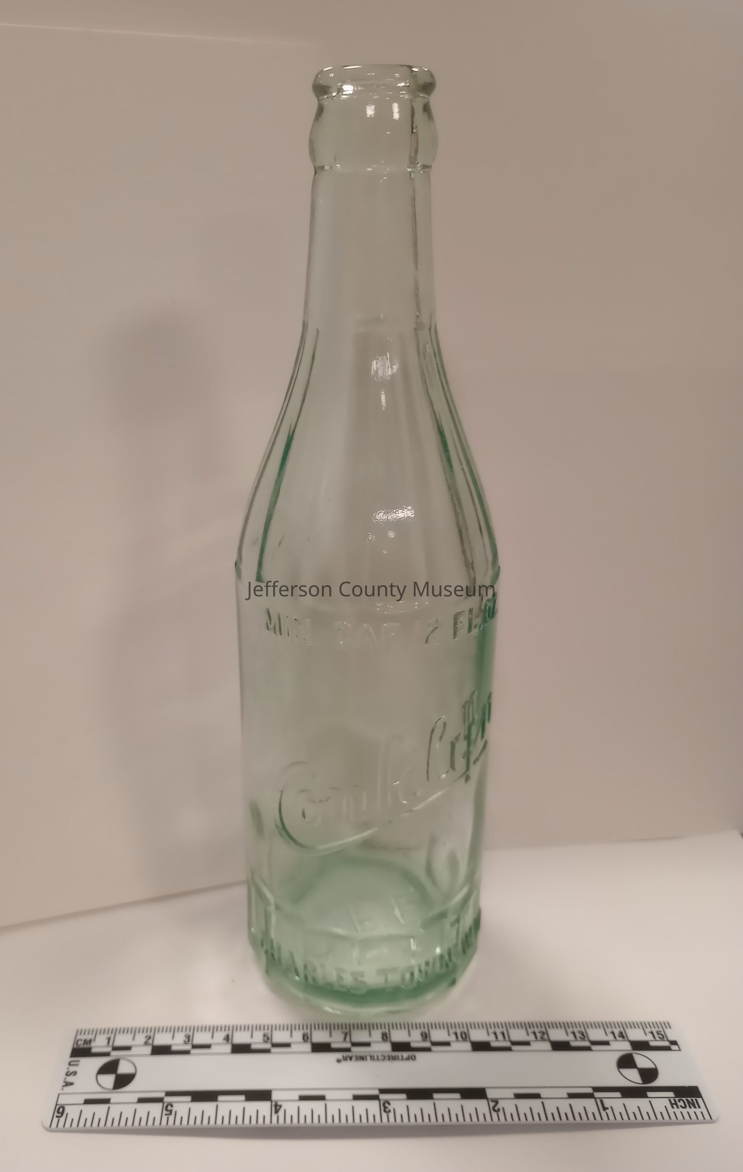Green glass bottle, 12 Fl oz. From the Conklyn bottling plant in Charles Town. Bottom is marked GFCAcquisition