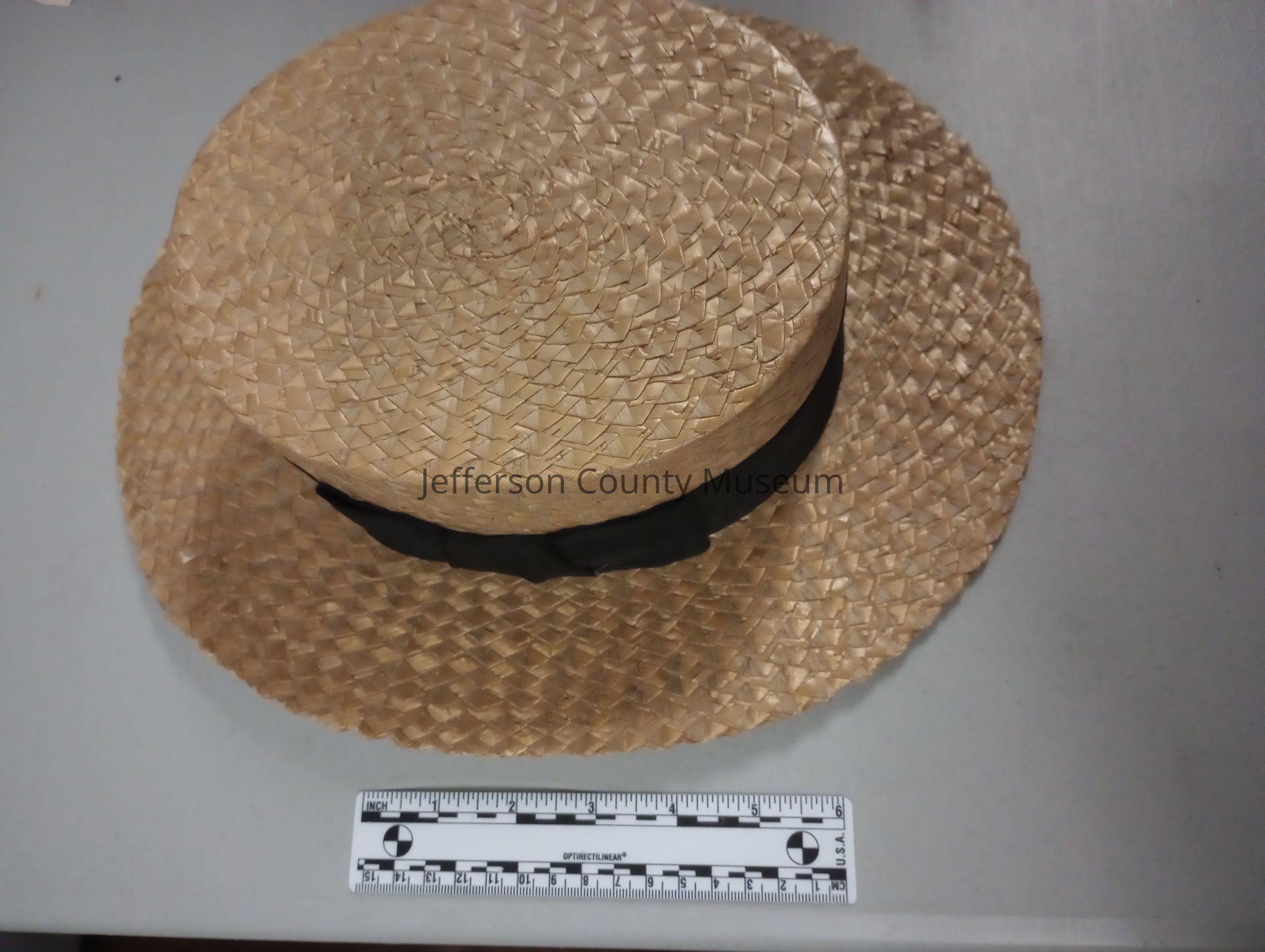 Straw hat with black band made by Charles Town milliner Isaac Herz. The name "L.W.Lloyd" is handwritten inside below makers mark.Acquisition