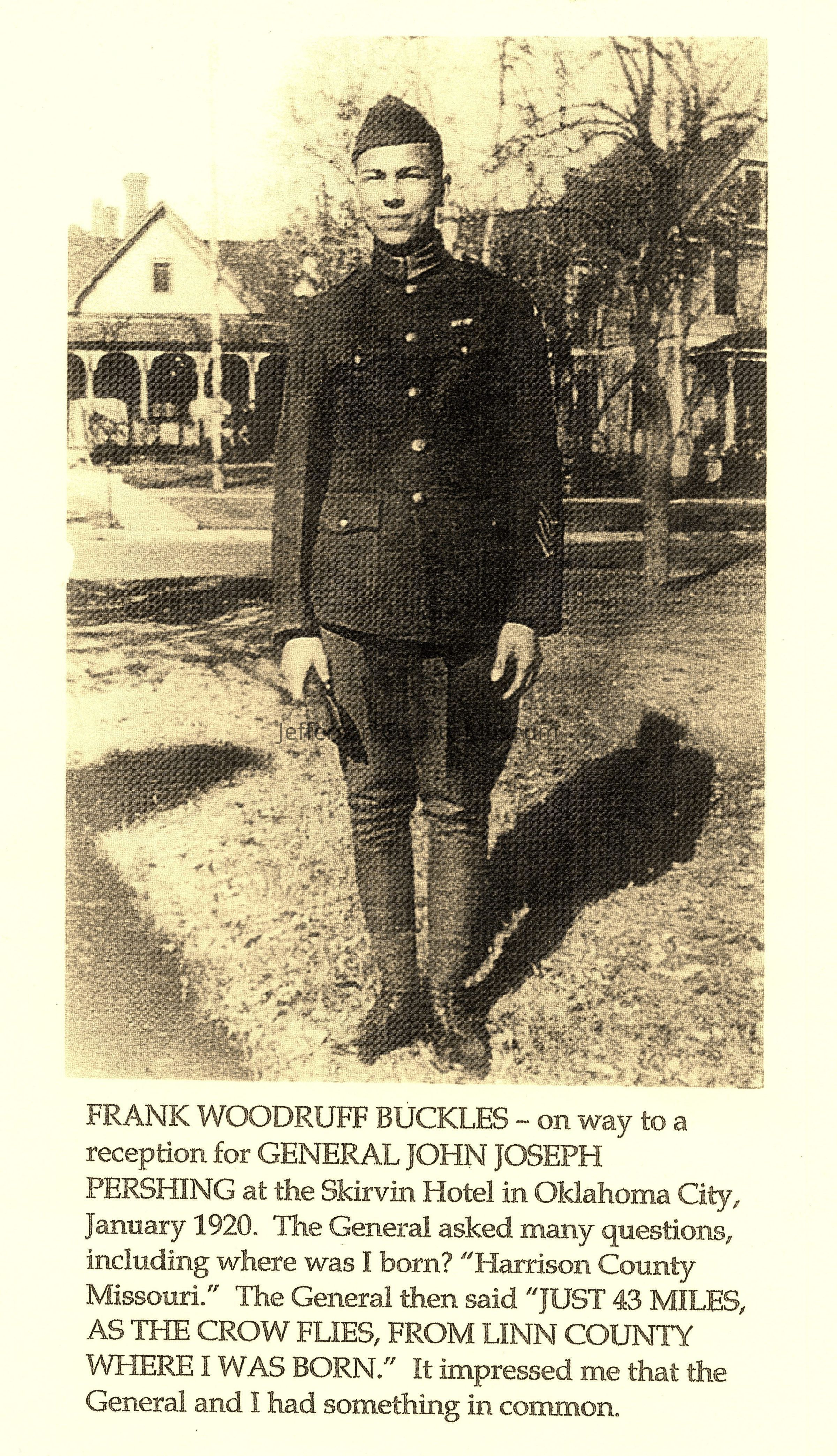 Frank Woodruff Buckles in a photograph taken January 1920 at the Skirvin Hotel in Oklahoma City, Oklahoma. Image stored as a jpeg.Acquisition