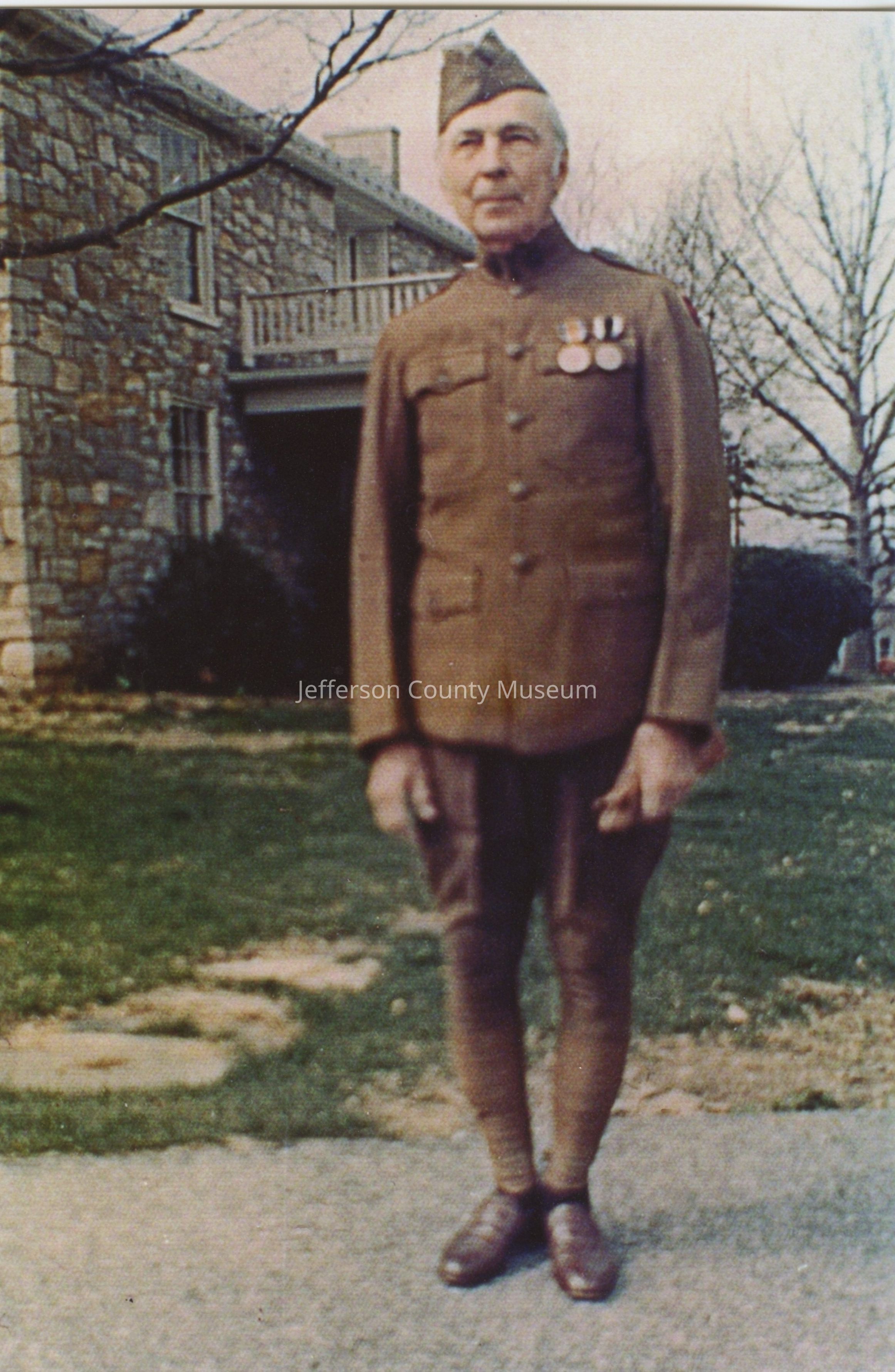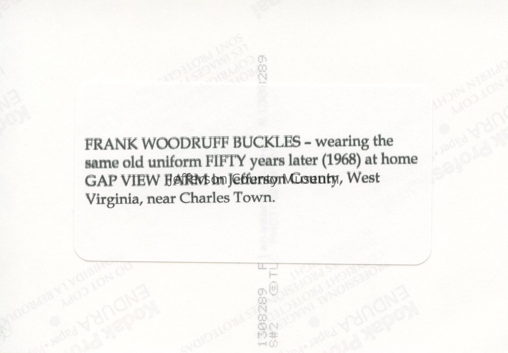 Frank Woodruff Buckles wearing World War I uniform in a picture taken in 1968 at Gap View Farm. Image stored as a jpeg.Acquisition