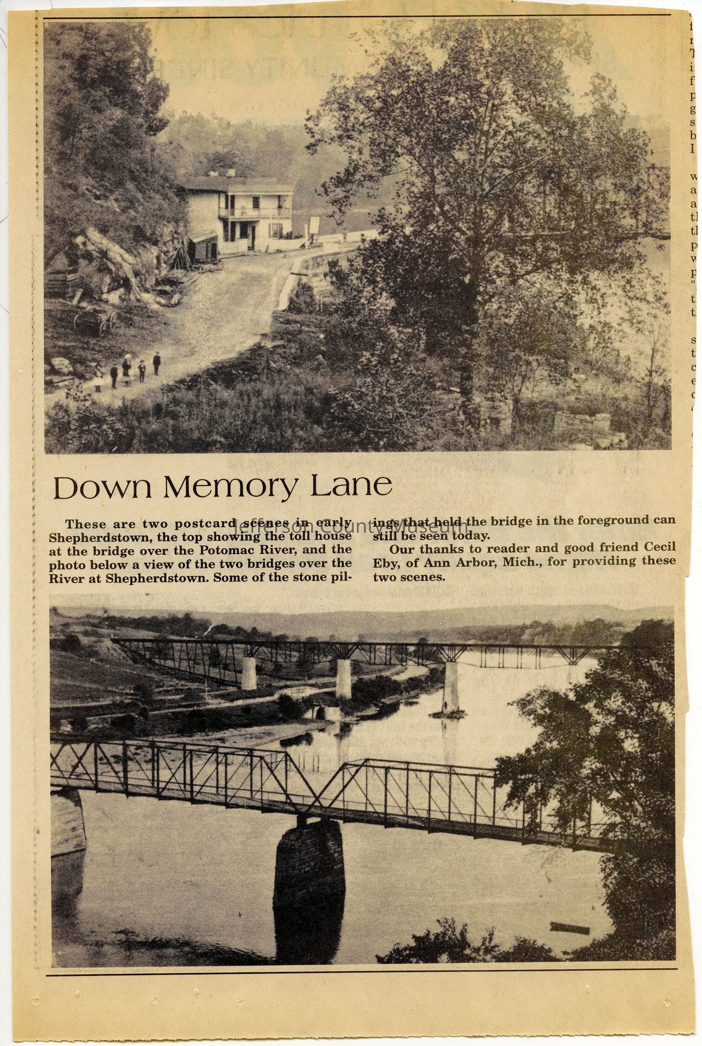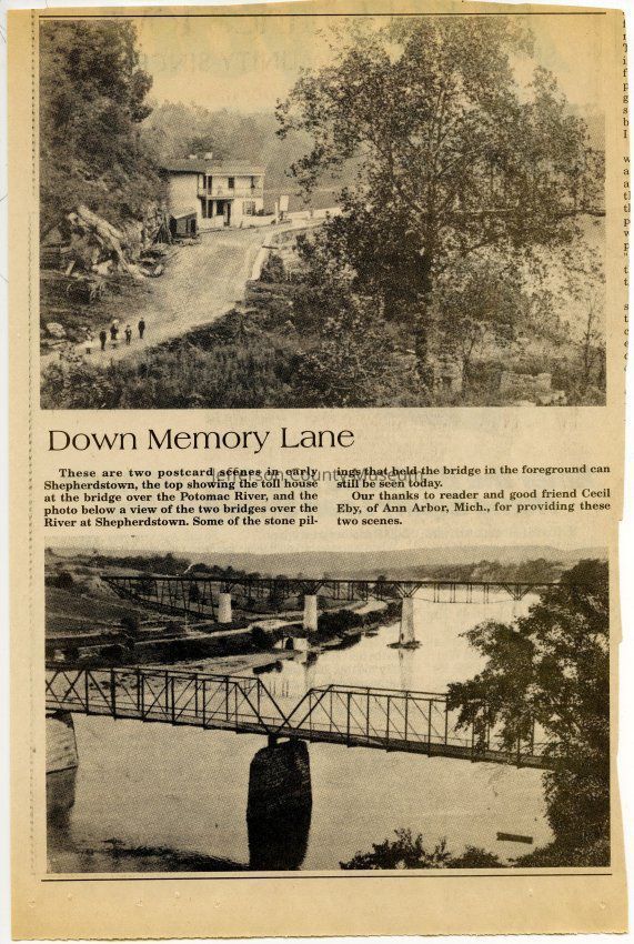 IMG3908121: Top photo: Toll house at the bridge over the Potomac River in Shepherdstown. Bottom photo: View of two bridges over the river at Shepherdstown.