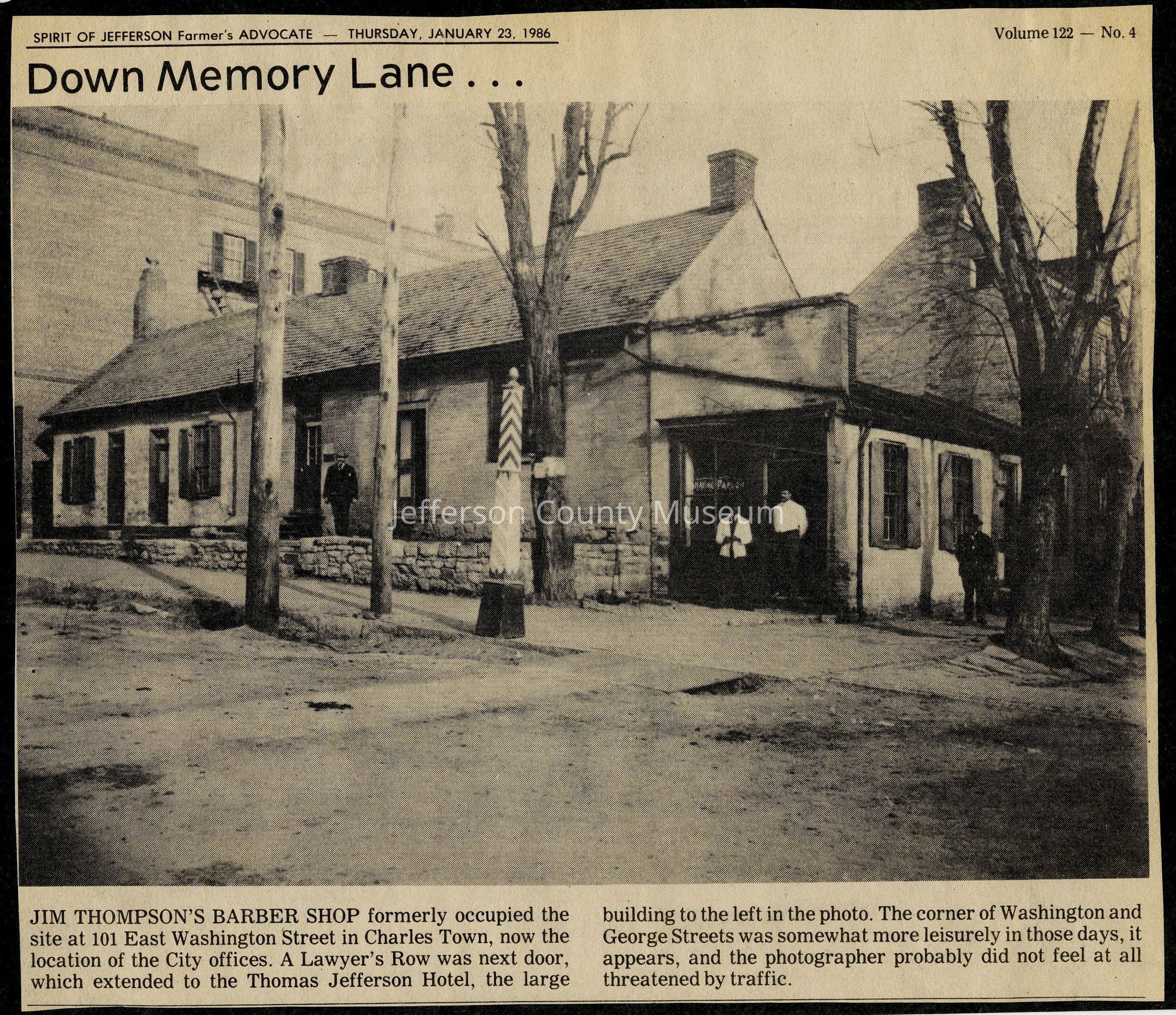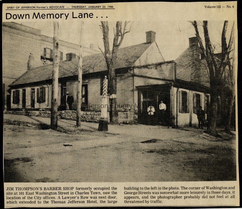 IMG3908039: Jim Thompson's Barber Shop, at 101 East Washington Street, Charles Town.