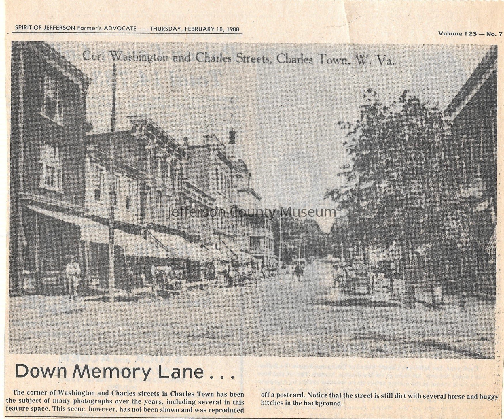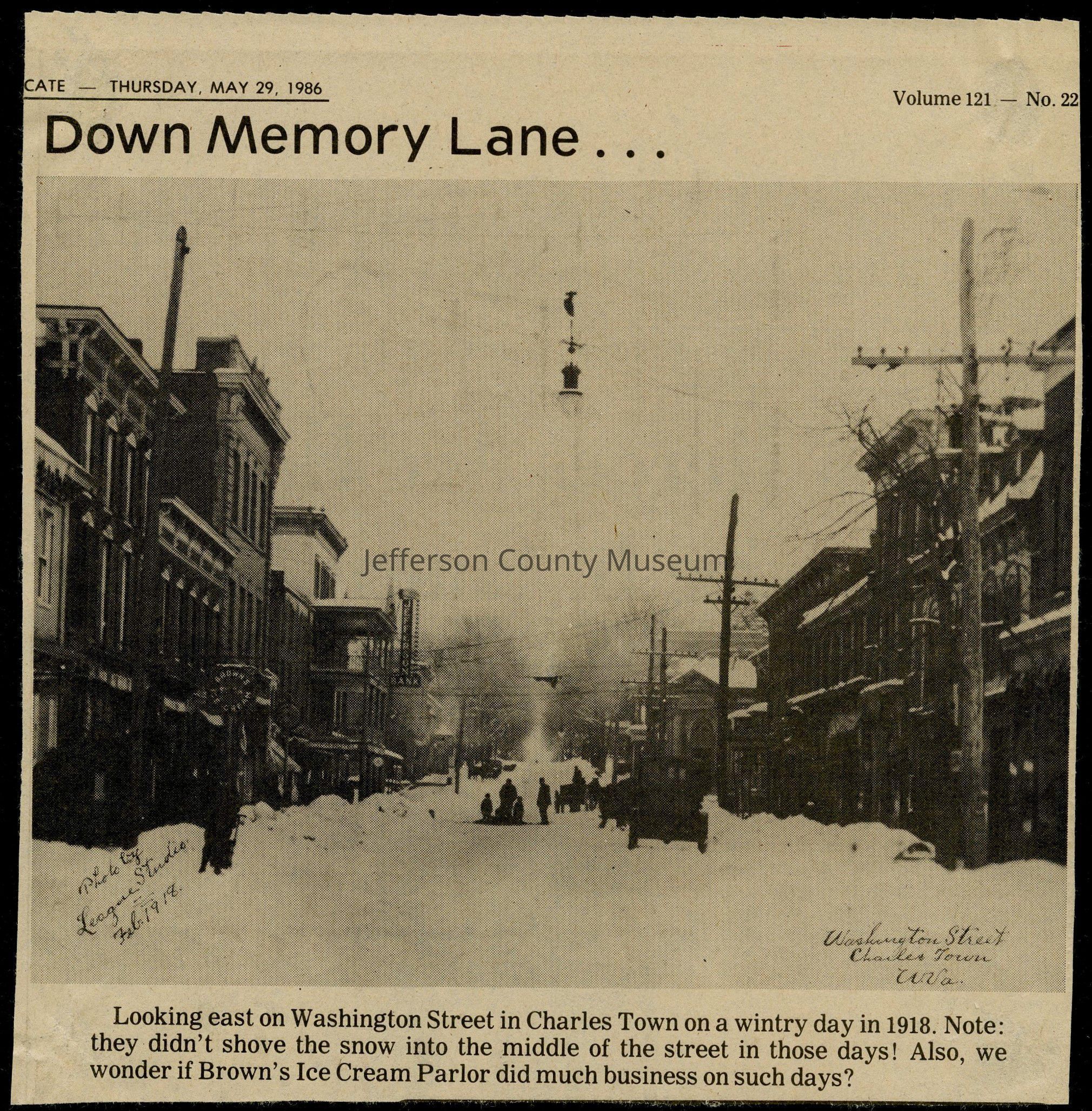 IMG3908049: Corner of Washington and Charles Streets in Charles Town, circa 1910s.