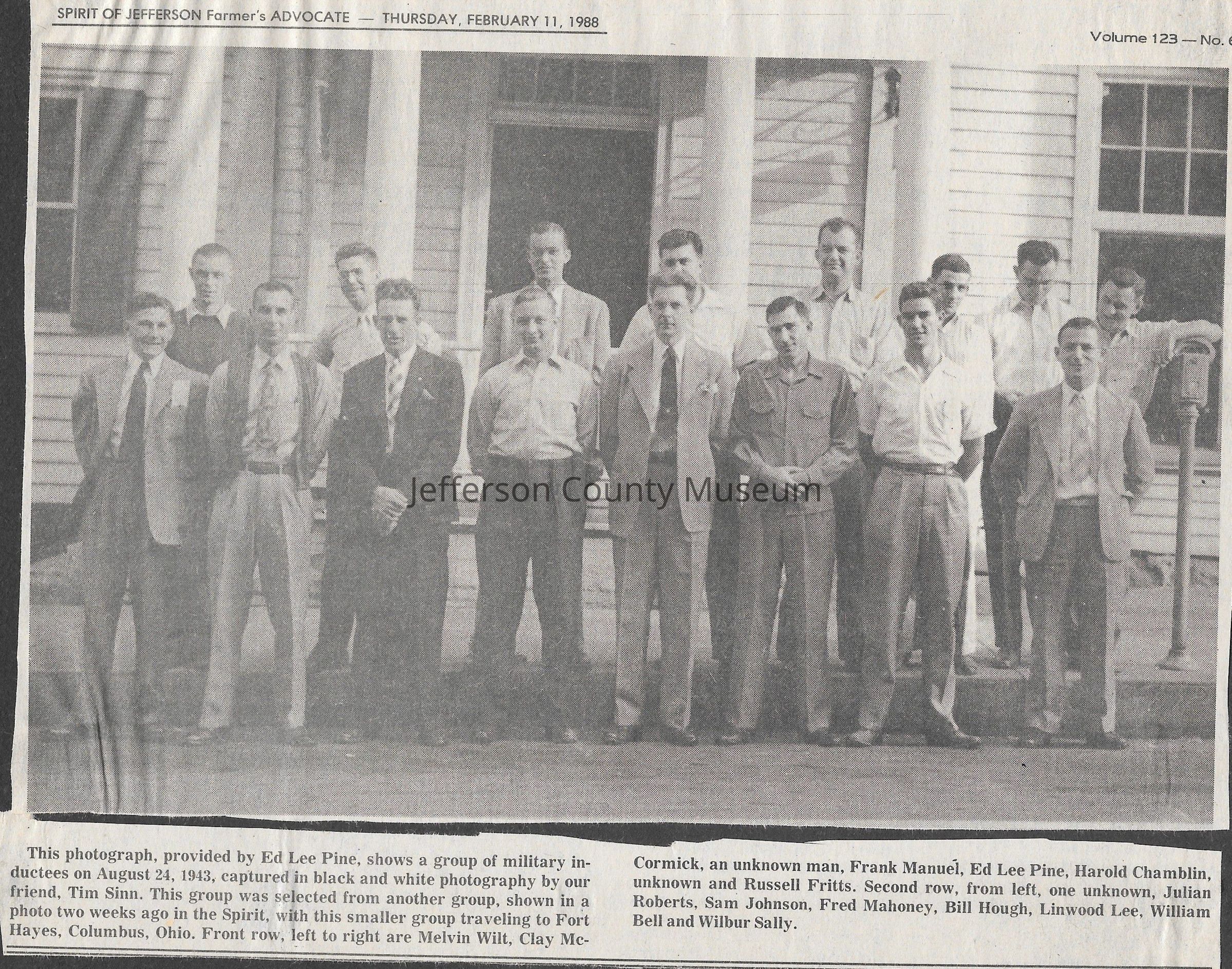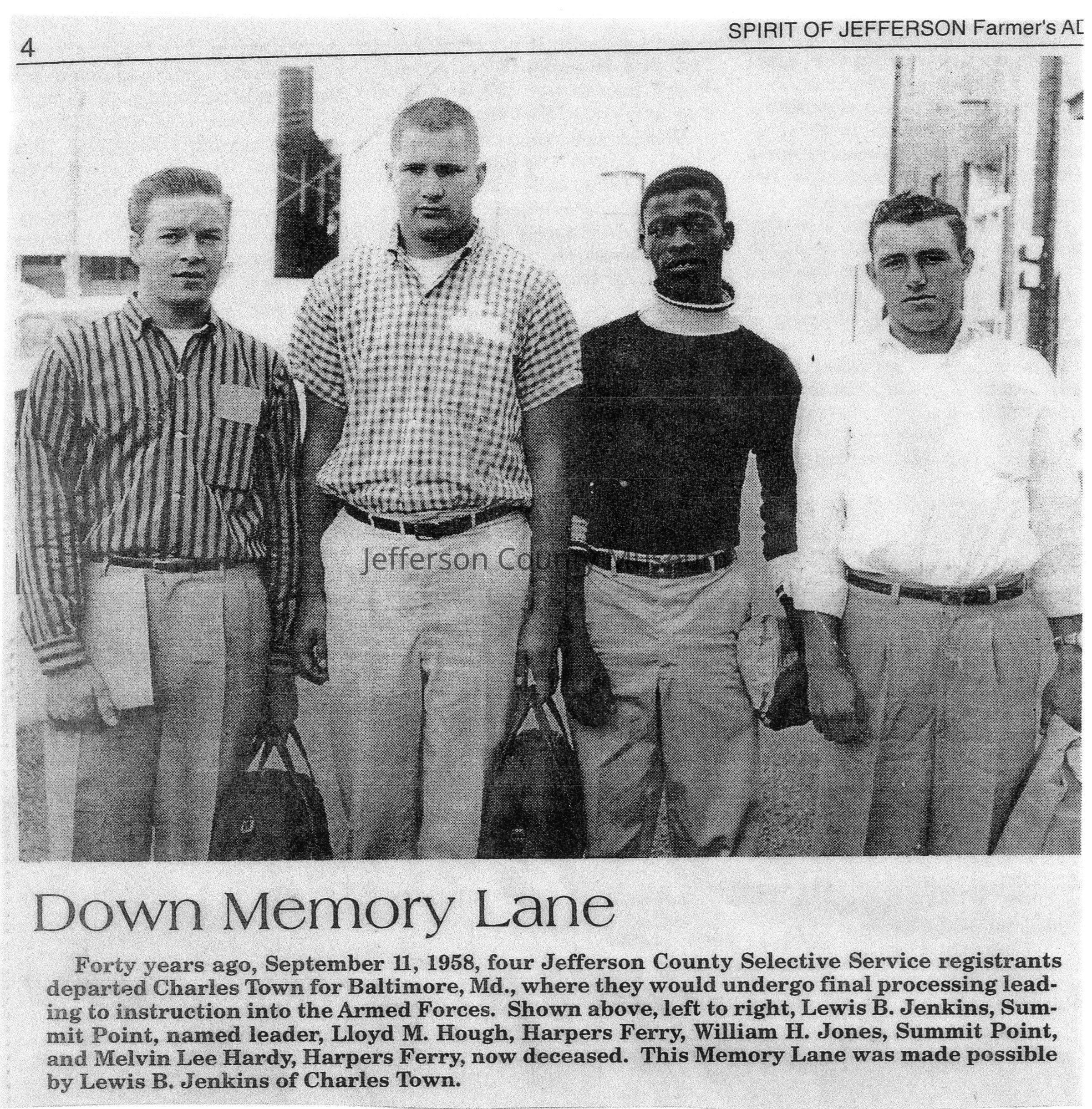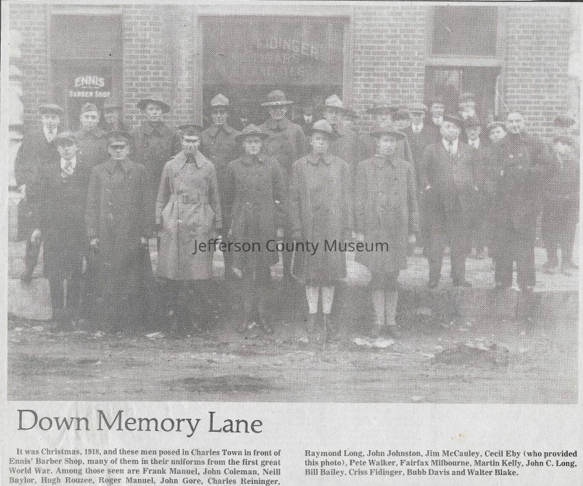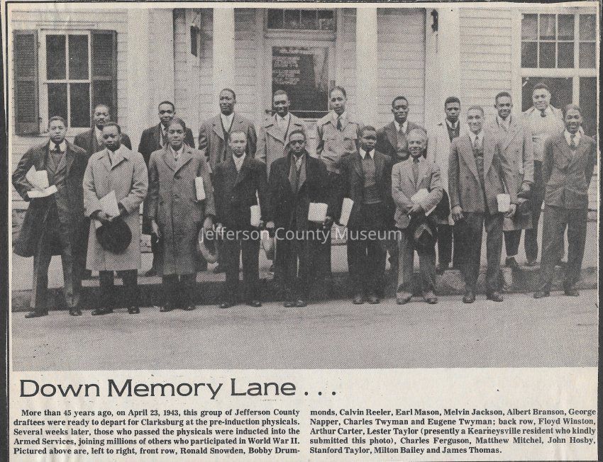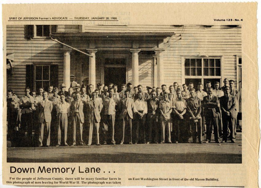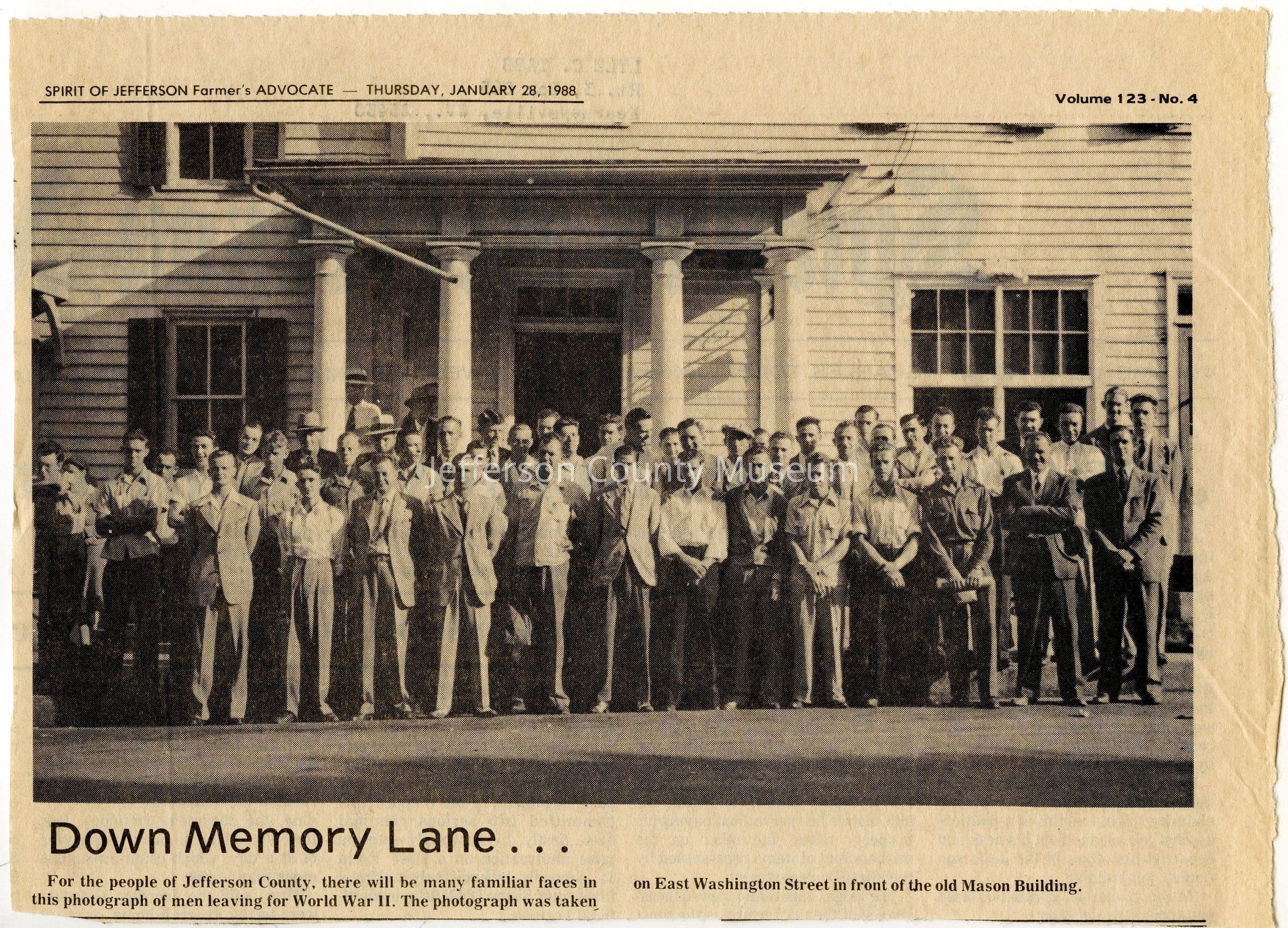 IMG3908056: World War II draftees in front of the old Mason building on East Washington Street in Charles Town.