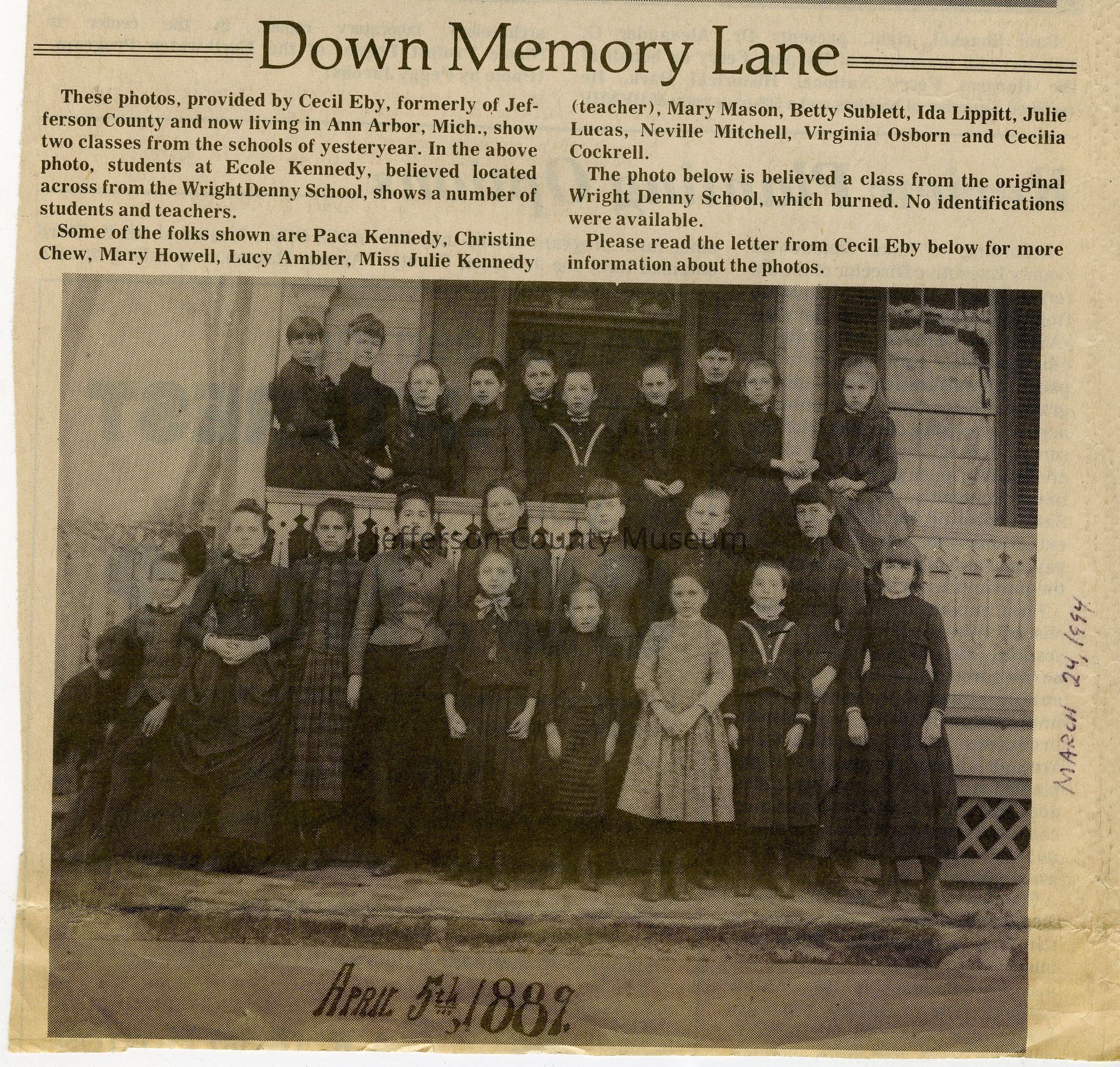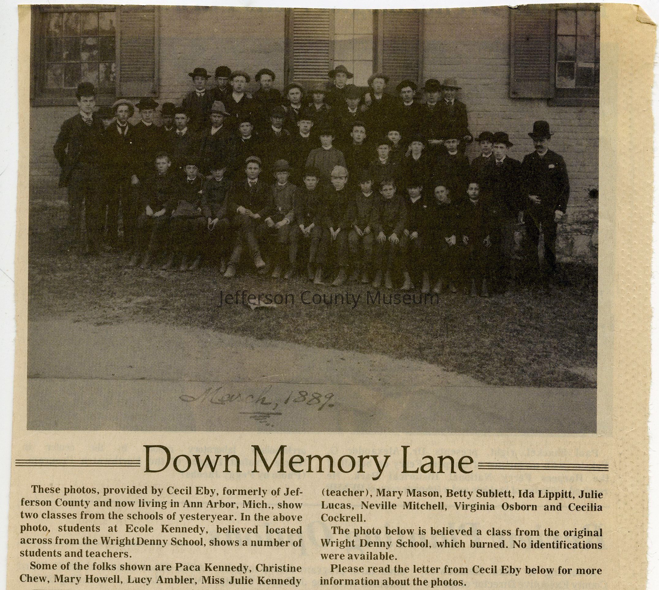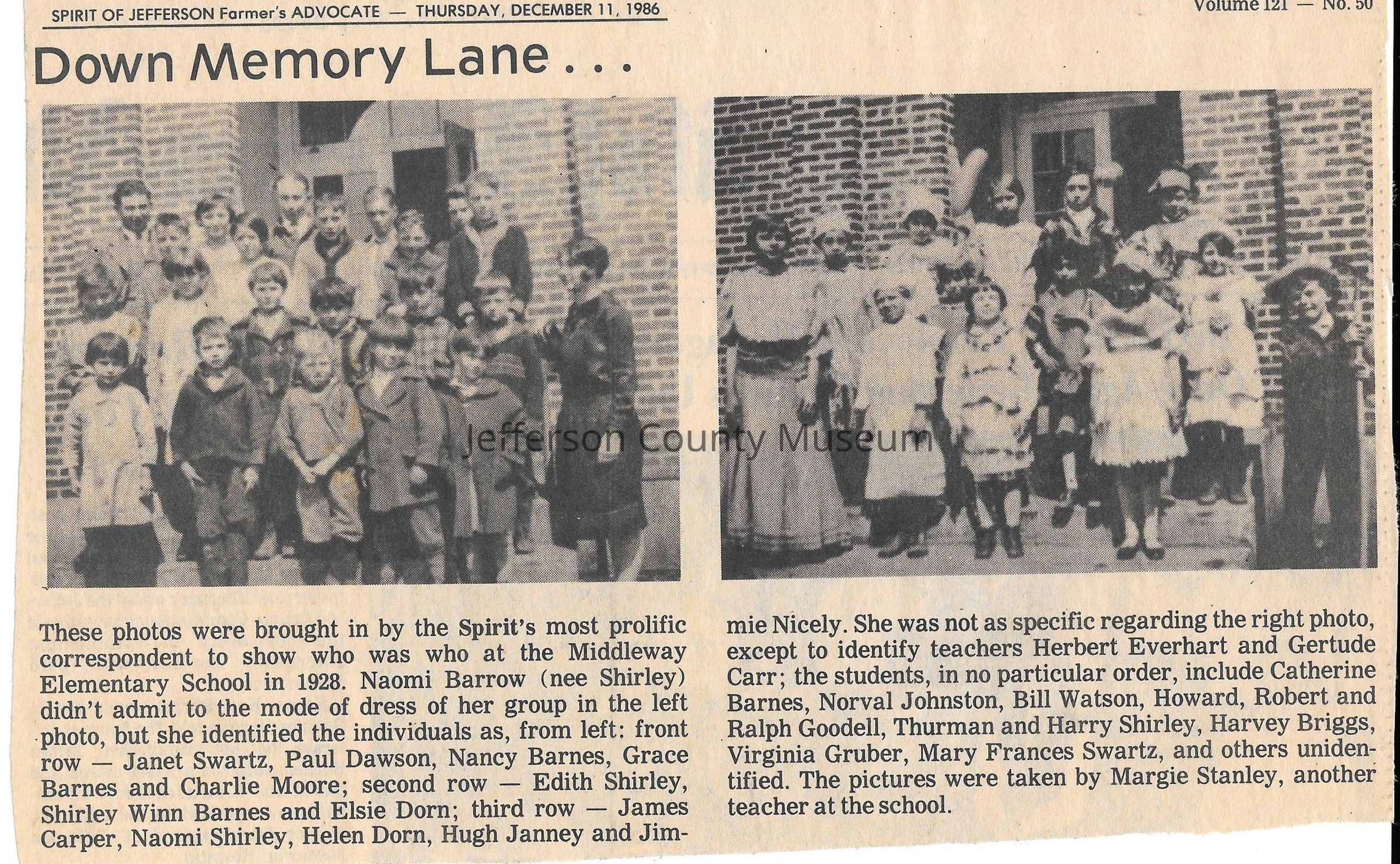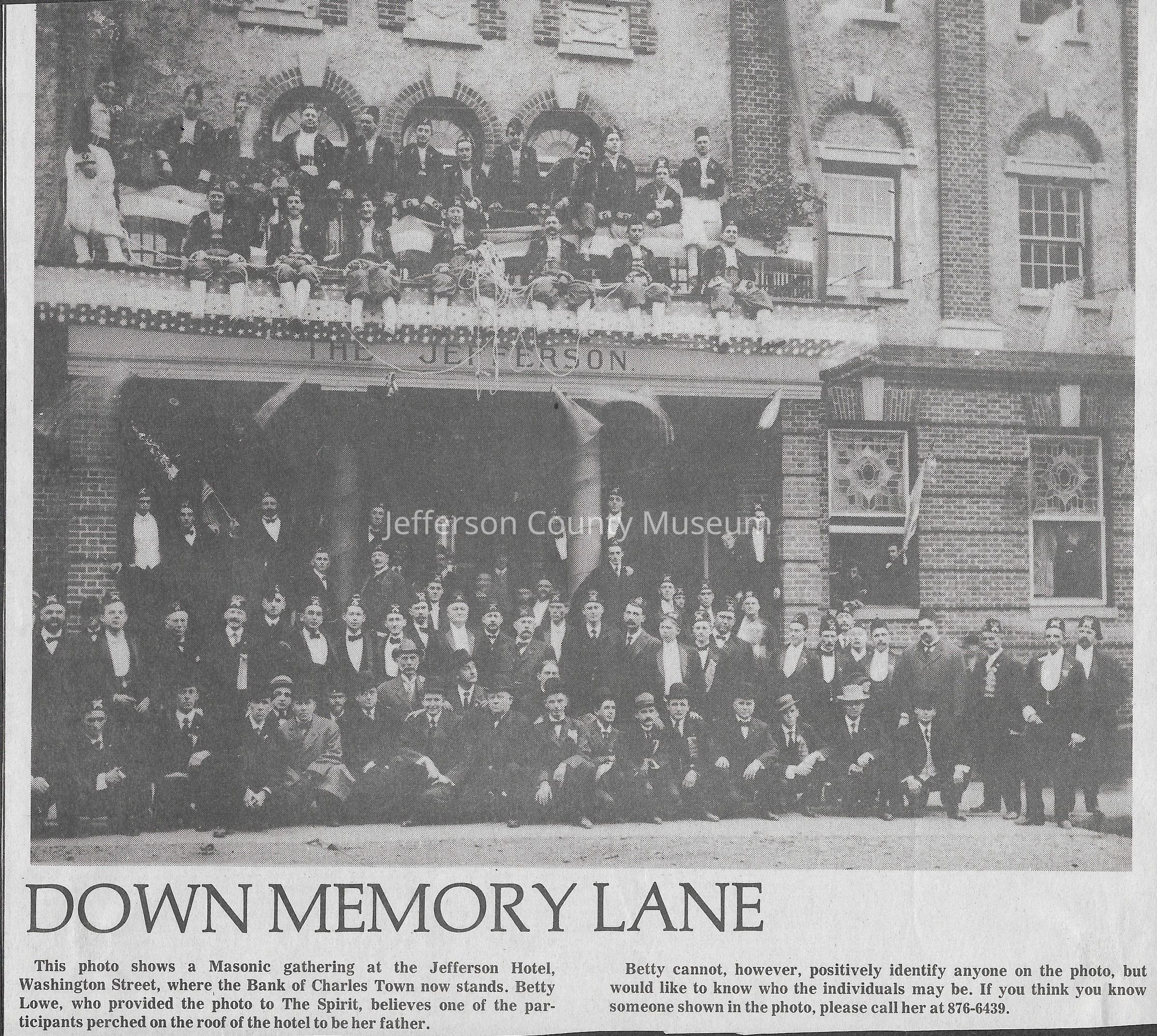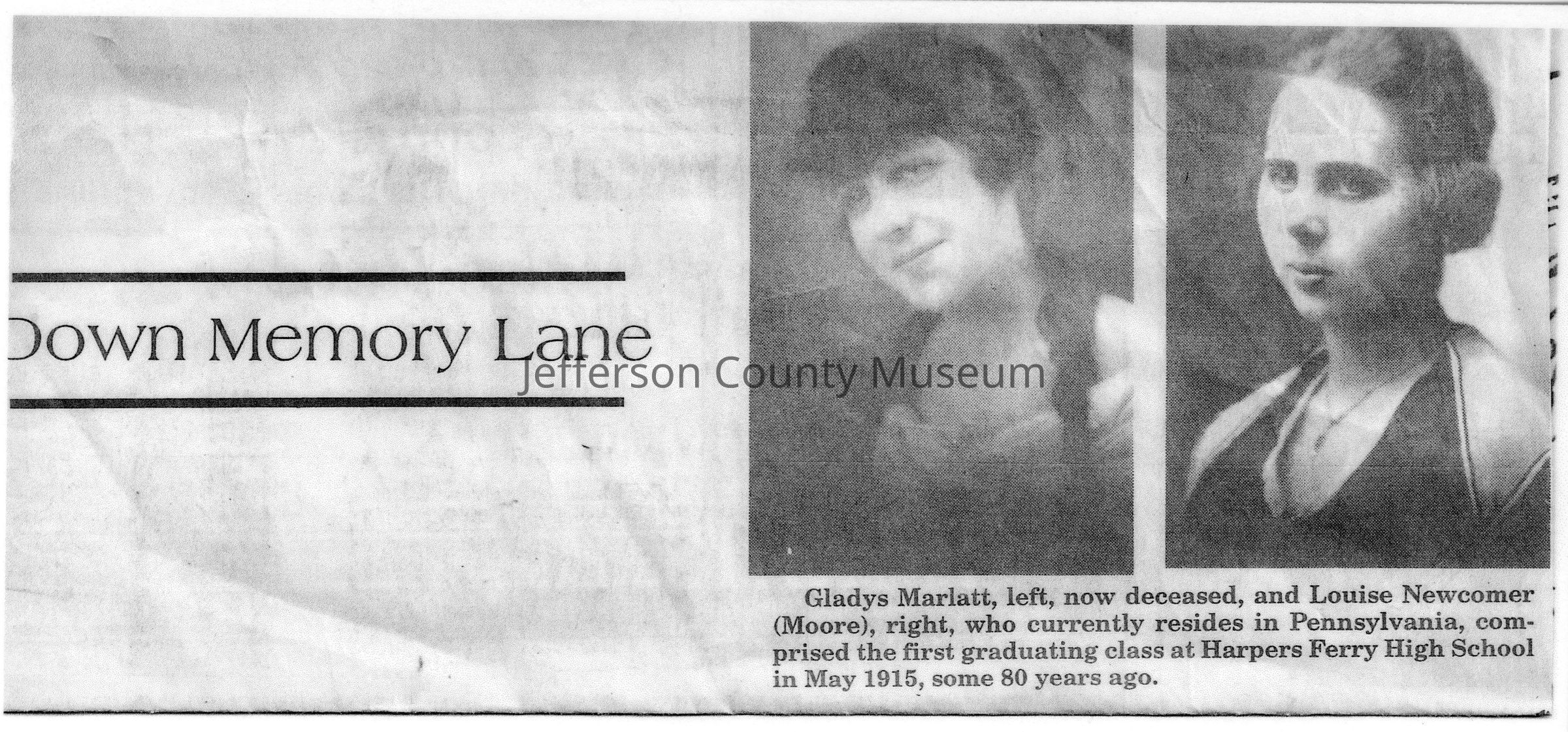 Collection of digital images of 153 news clippings with photographs from the Down Memory Lane photograph feature that ran in the Spirit of Jefferson newspaper in the 1990s to 2000s.