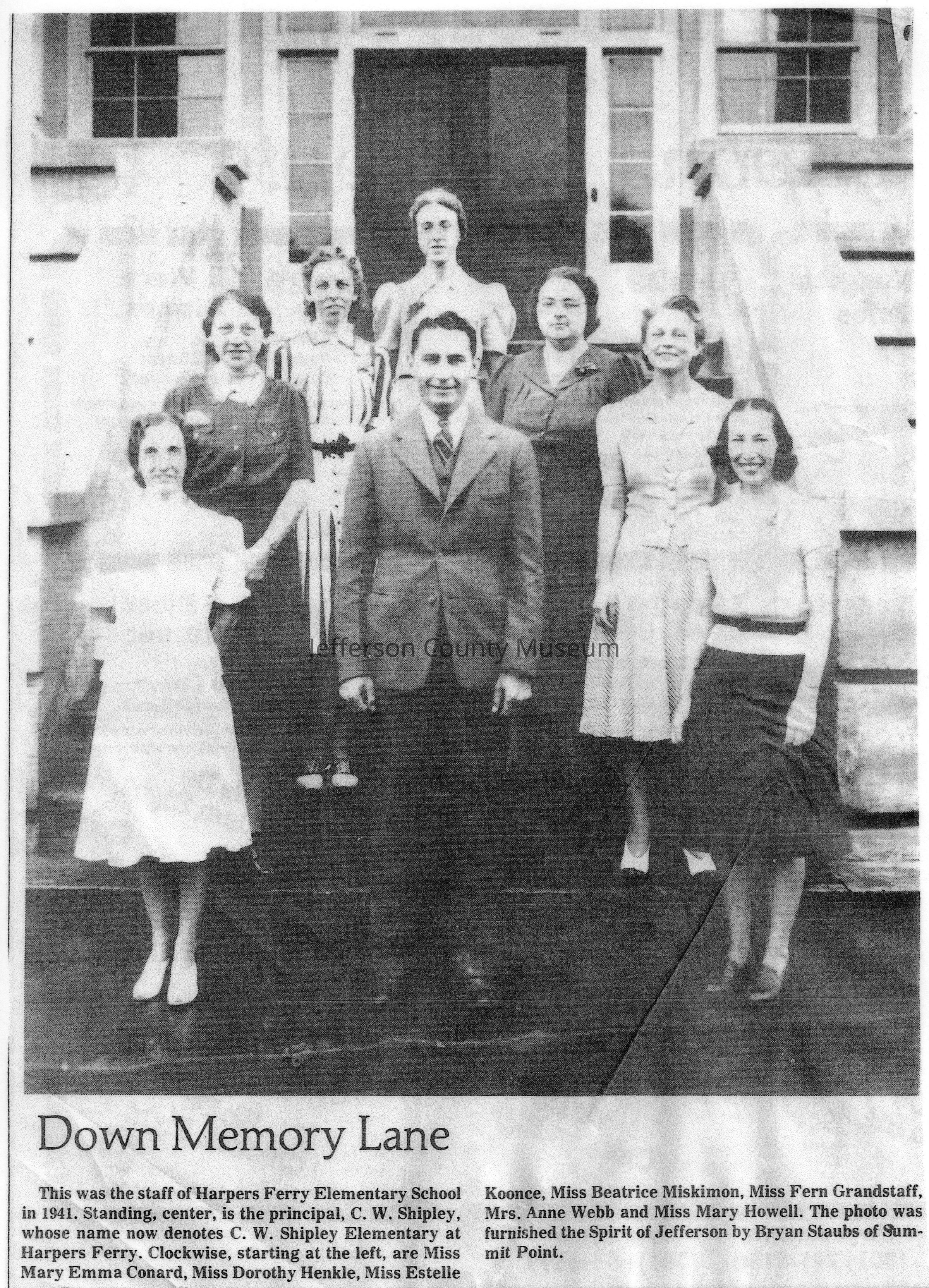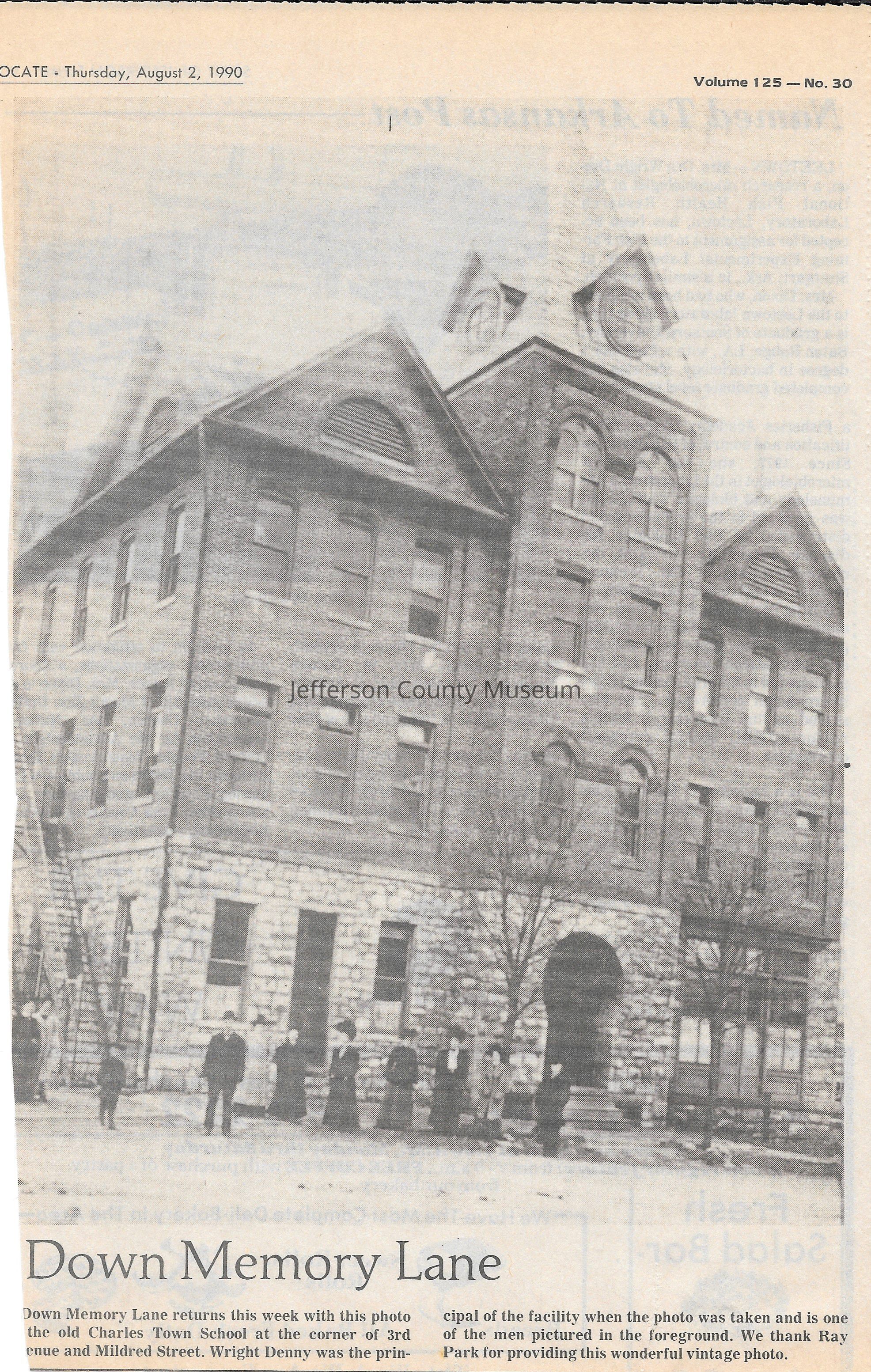 IMG3908035: Charles Town School, at corner of 3rd Avenue and Mildred Street in Charles Town. Wright Denny, principal, pictured in foreground.