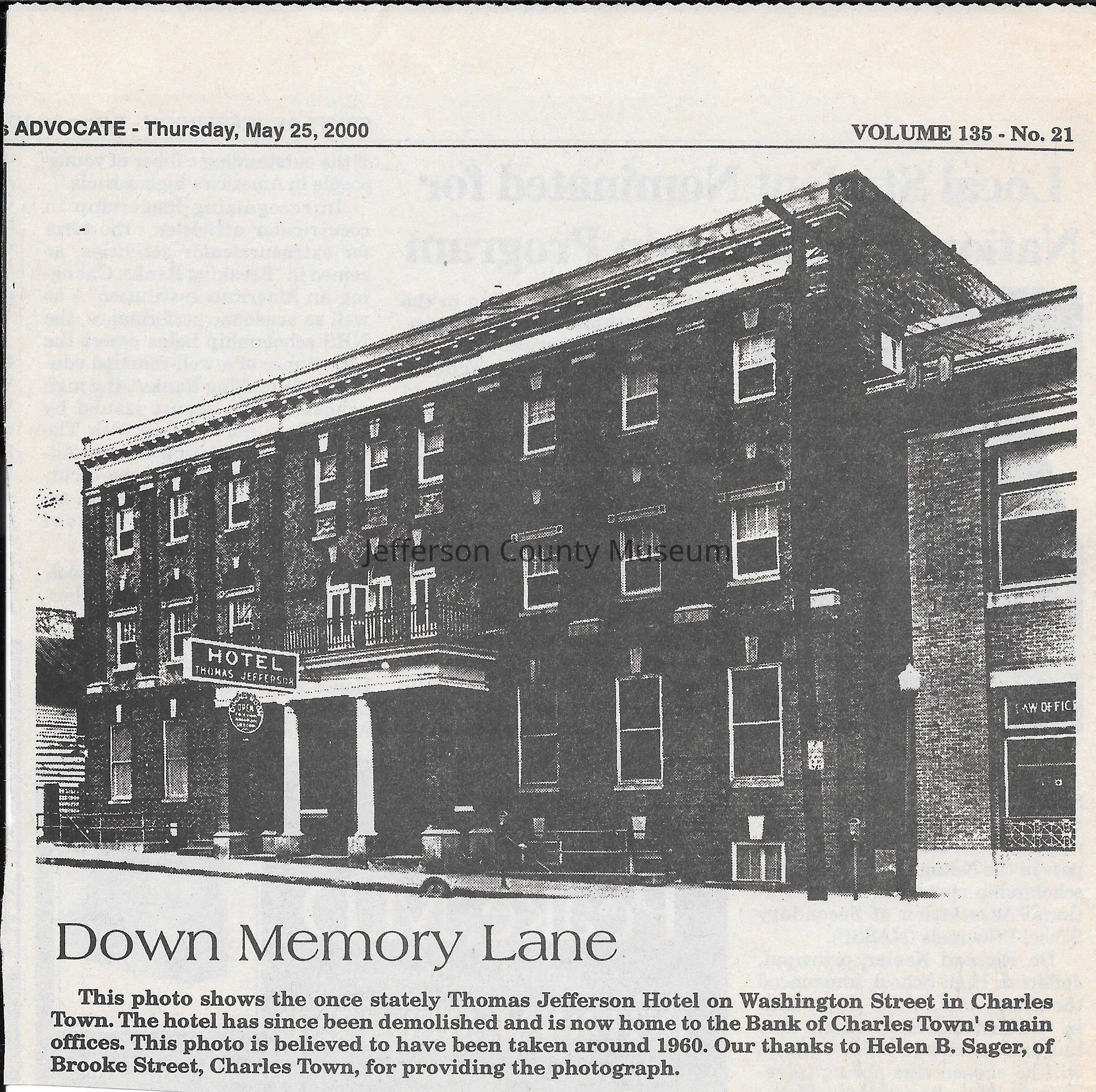 IMG3908071: Thomas Jefferson Hotel, on Washington Street in Charles Town, circa 1960.
