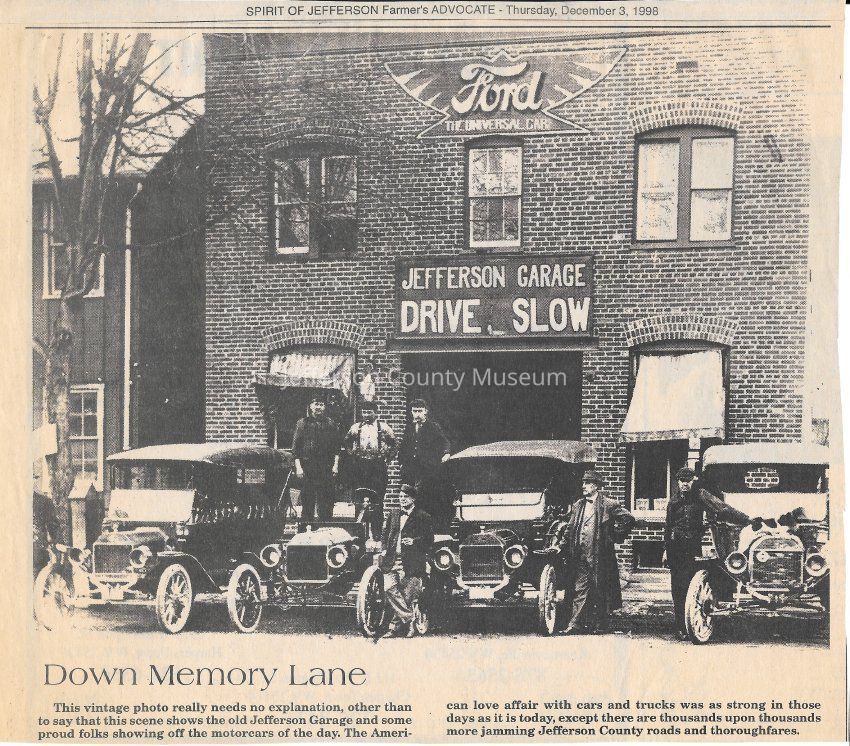 IMG3908083: Men and cars in front of Jefferson Garage on East Liberty Street in Charles Town, circa 1920s.