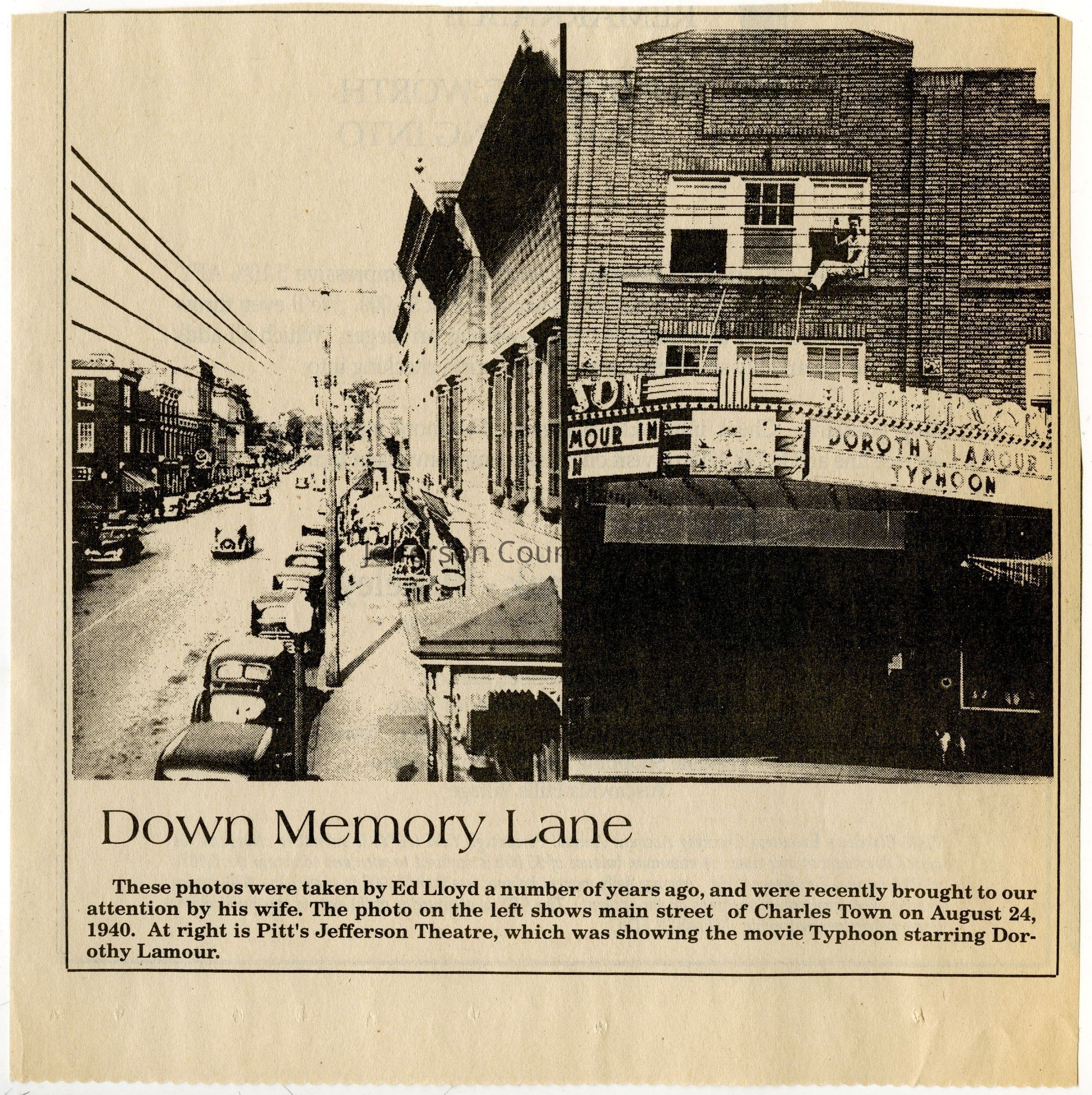 IMG3908052: West Washington Street in Charles Town, August 24, 1940. On right is Pitt's Jefferson Theatre.