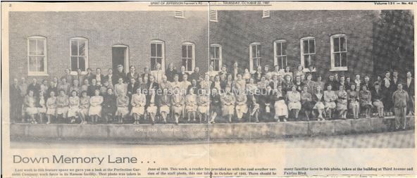 IMG3908102: Employees at Perfection Garment Company, located at Third Avenue and Fairfax Boulevard in Ranson, October 1948.