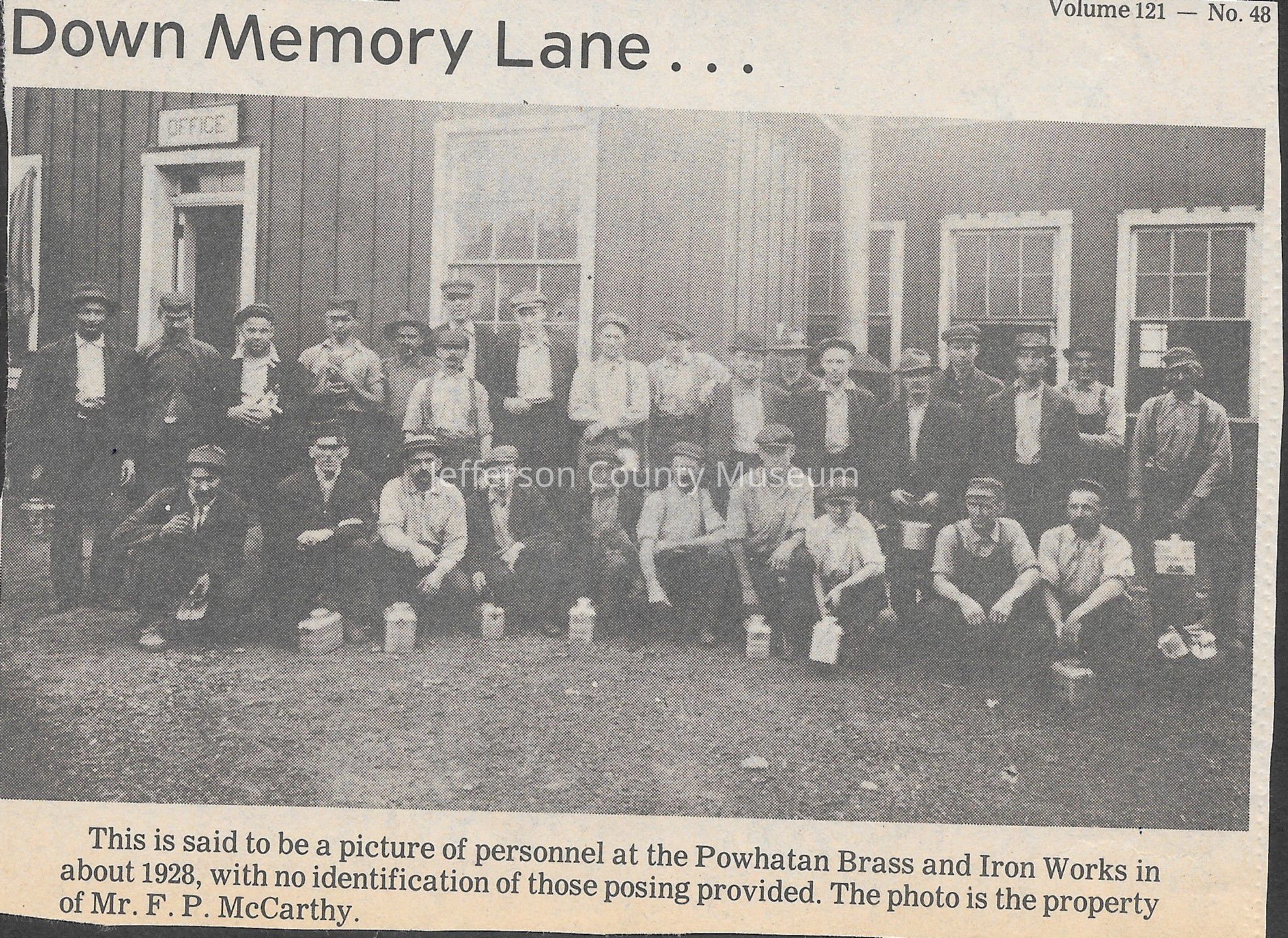 IMG3908105: Employees at Powhatan Brass and Iron Works, circa 1928.