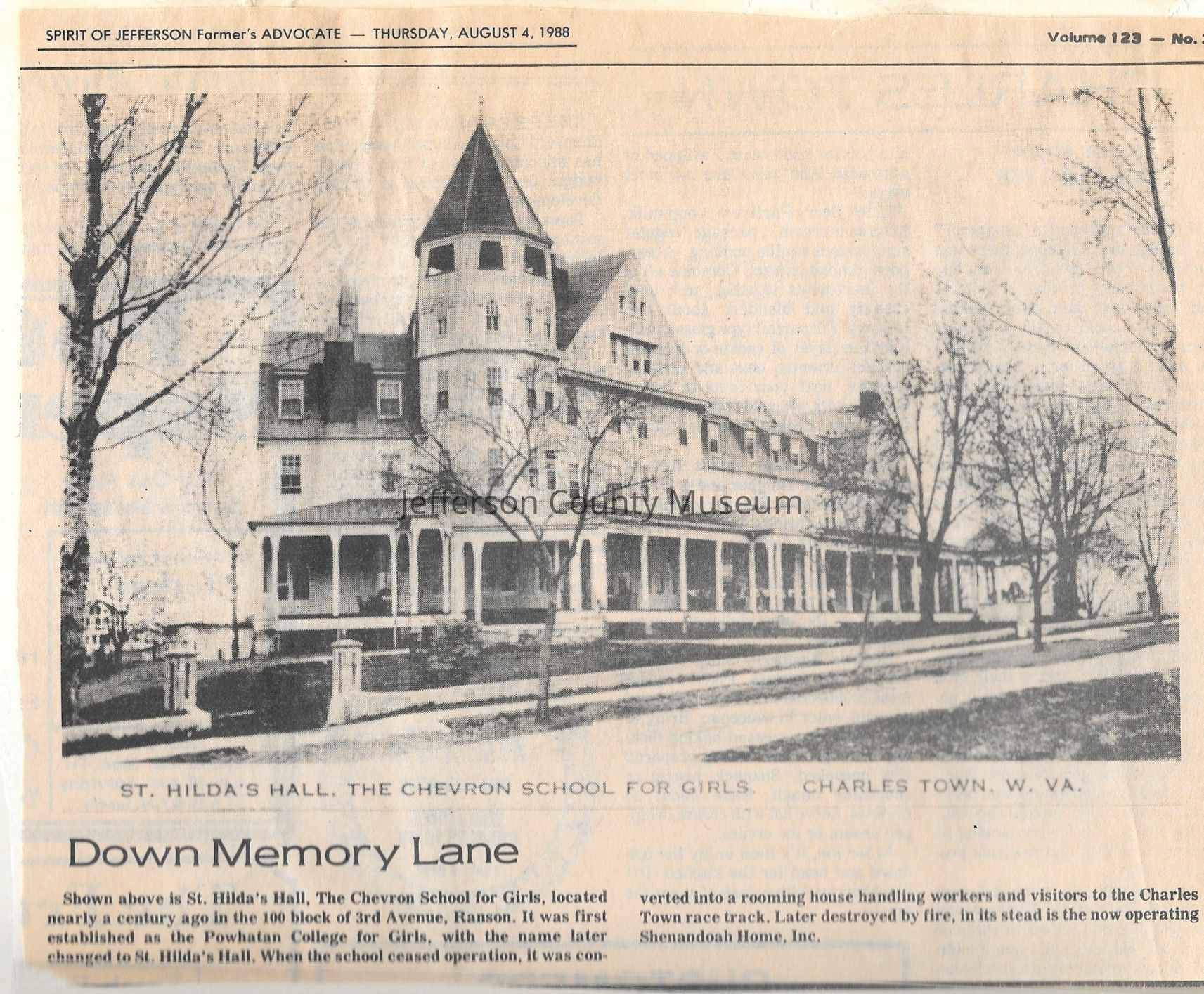 IMG3908127: St. Hilda's Hall, the Chevron School for Girls, located in the 100 block of 3rd Avenue in Ranson.