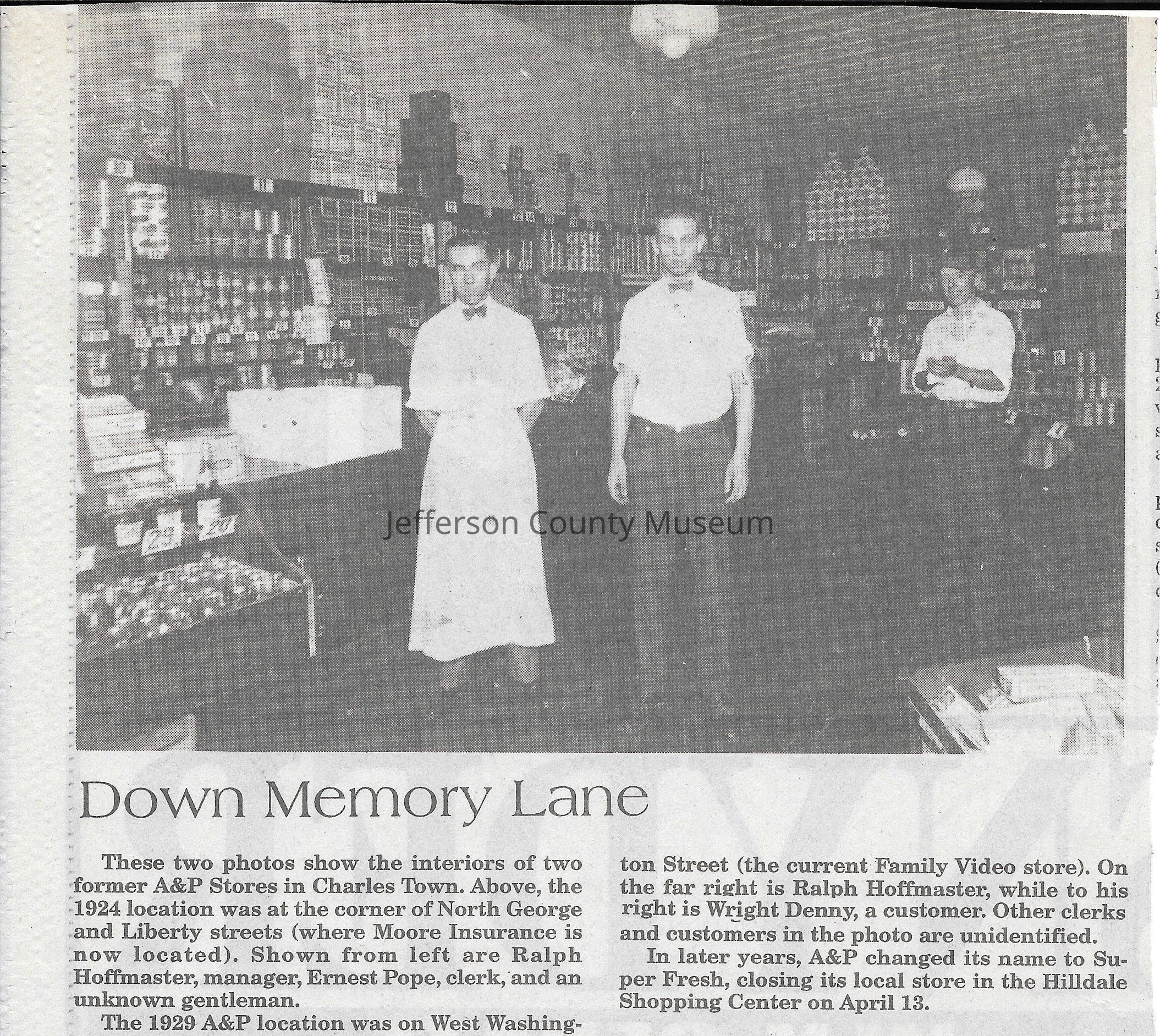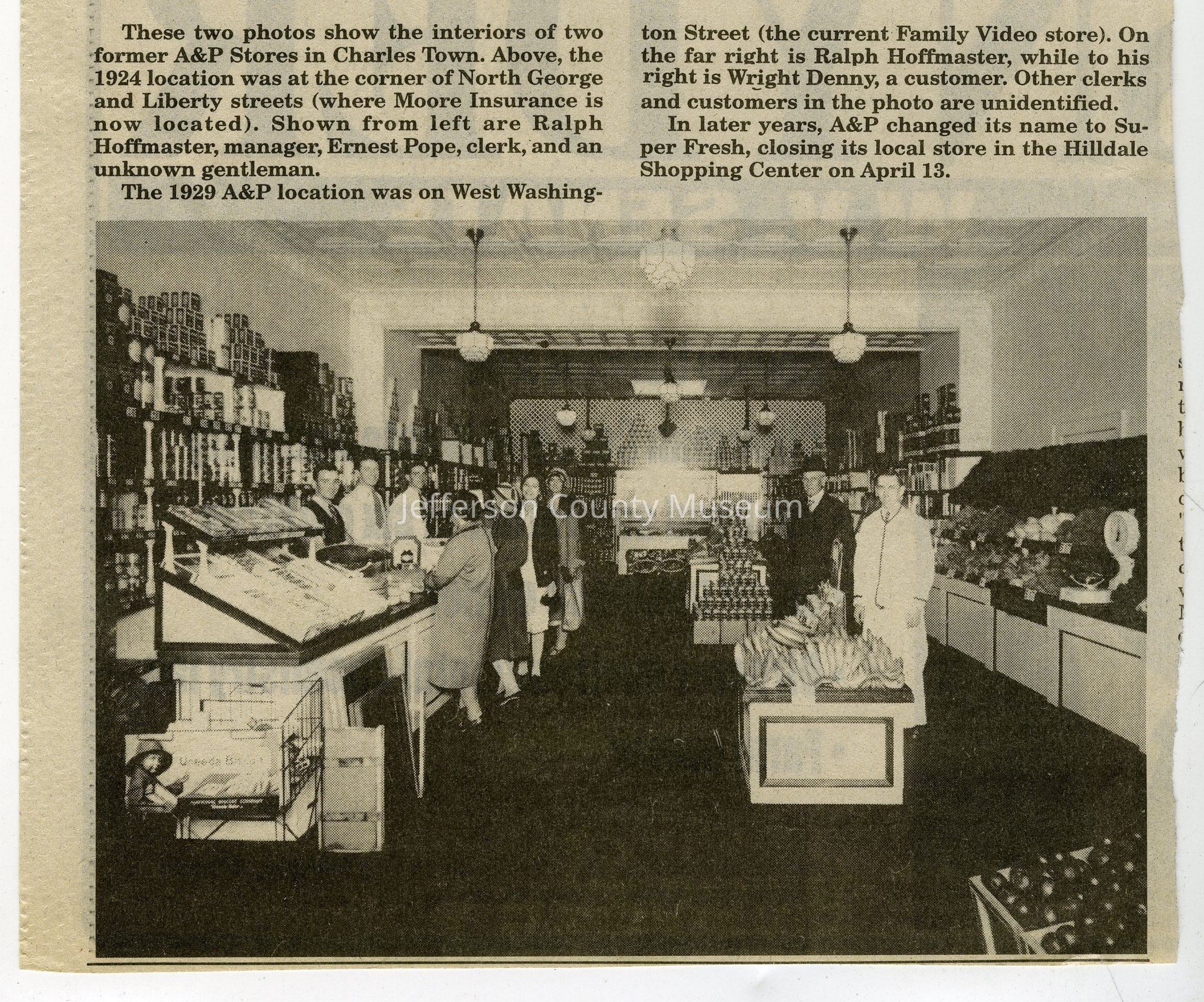 IMG3908004: A&P Store on West Washington Street in Charles Town, 1929. On far right, in black, is Wright Denny. To his right is Ralph Hoffmaster, manager.