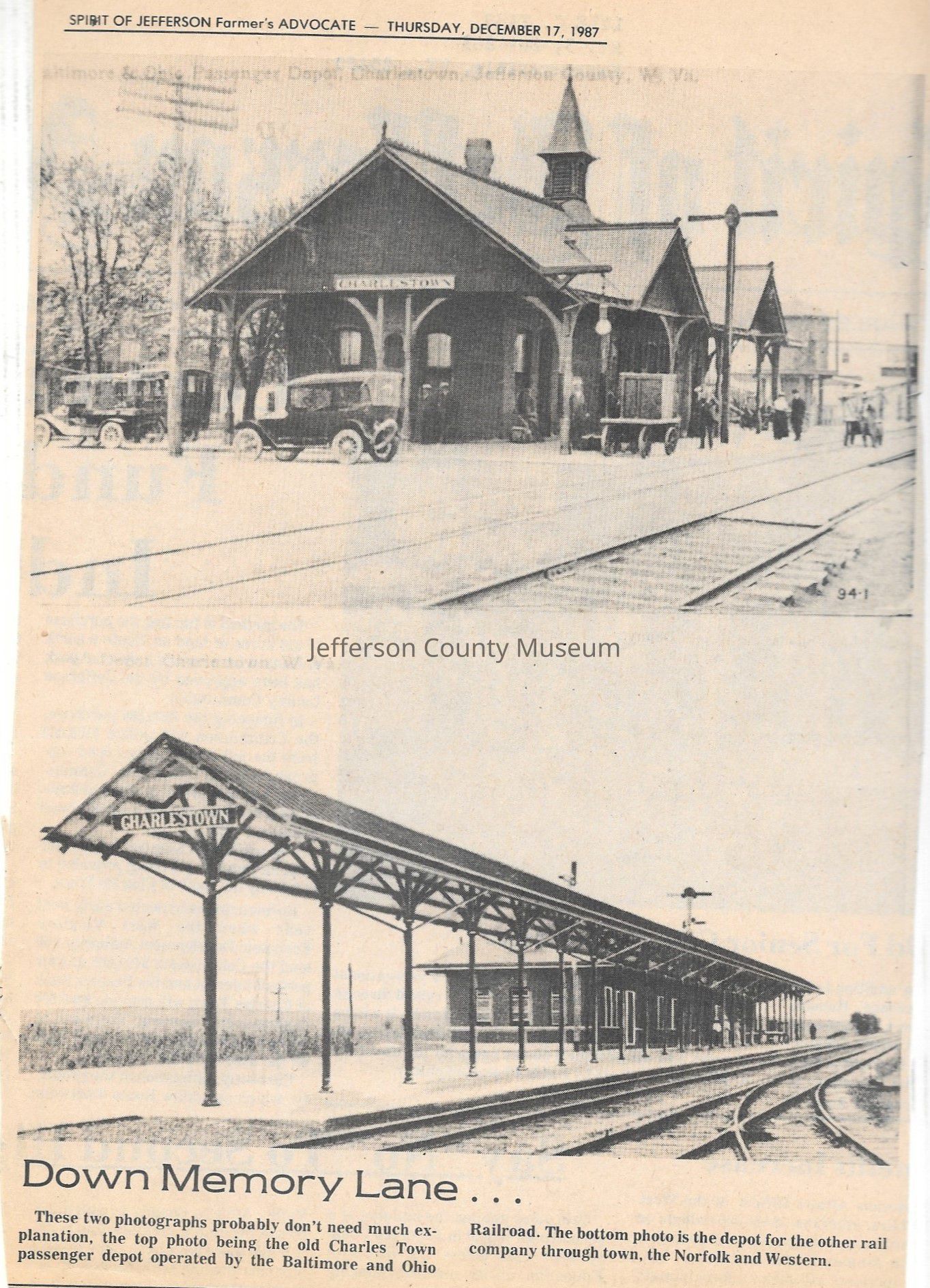 IMG3908009: Top photo: Charles Town B & O Railroad Station, located on Mildred and North Streets in Charles Town. Bottom photo: Charles Town Norfolk and Western Railroad Station.