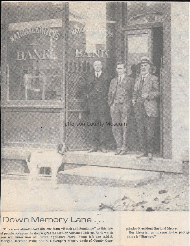 IMG3908013: National Citizens Bank, located in Charles Town. From left to right: A. M. S. Morgan, Herman Willis, S. Davenport Moore.