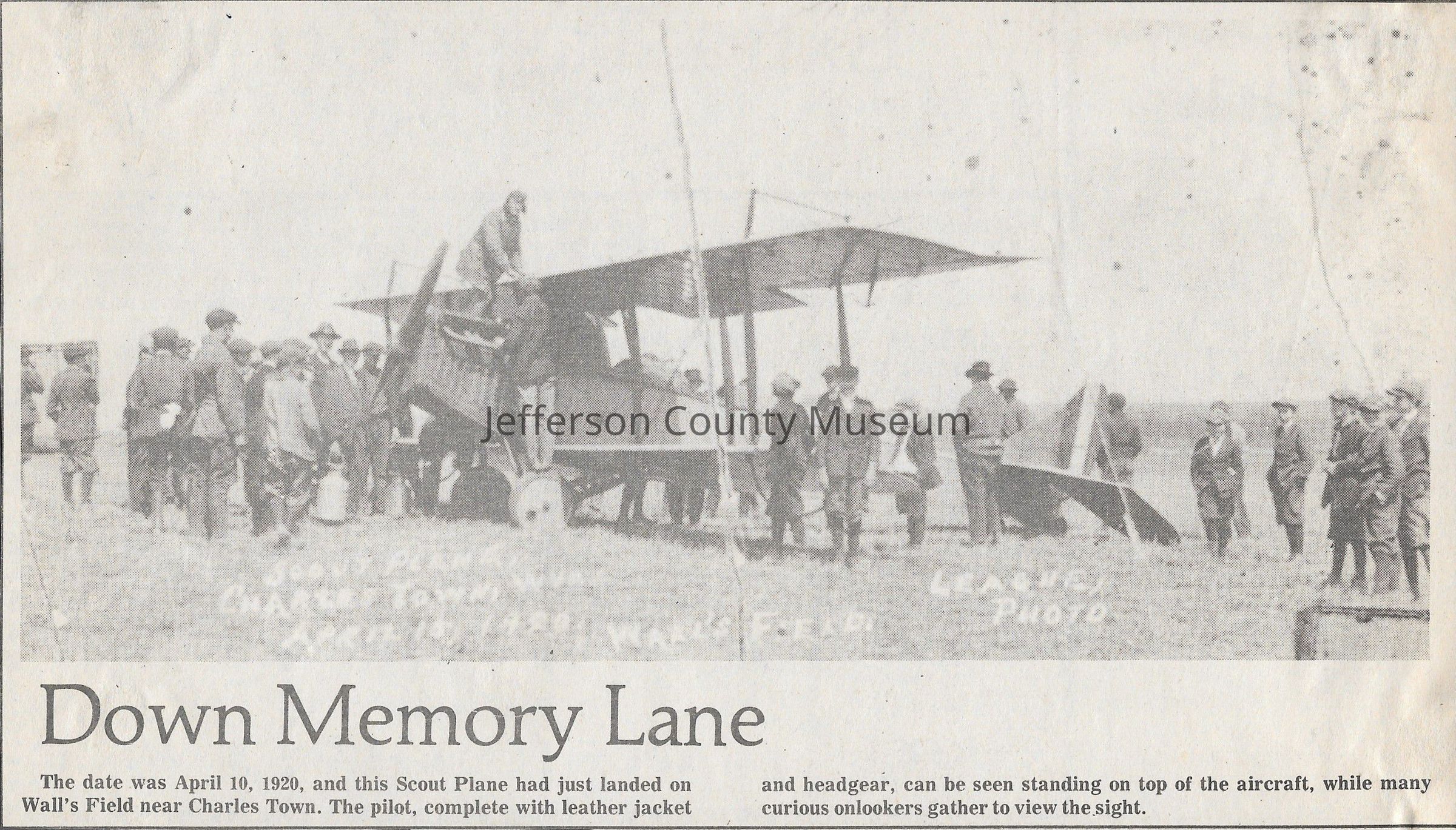 IMG3908002: Scout plane landed in Wall's Field near Charles Town, April 10, 1920.