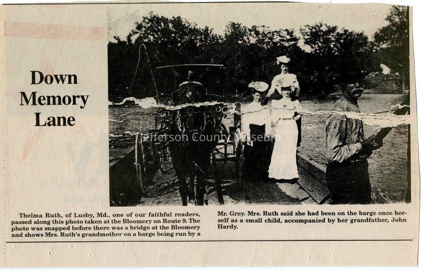 IMG3908019: Ferry near the Bloomery on Route 9. Ferry operator is Mr. Grey. Three women unidentified.
