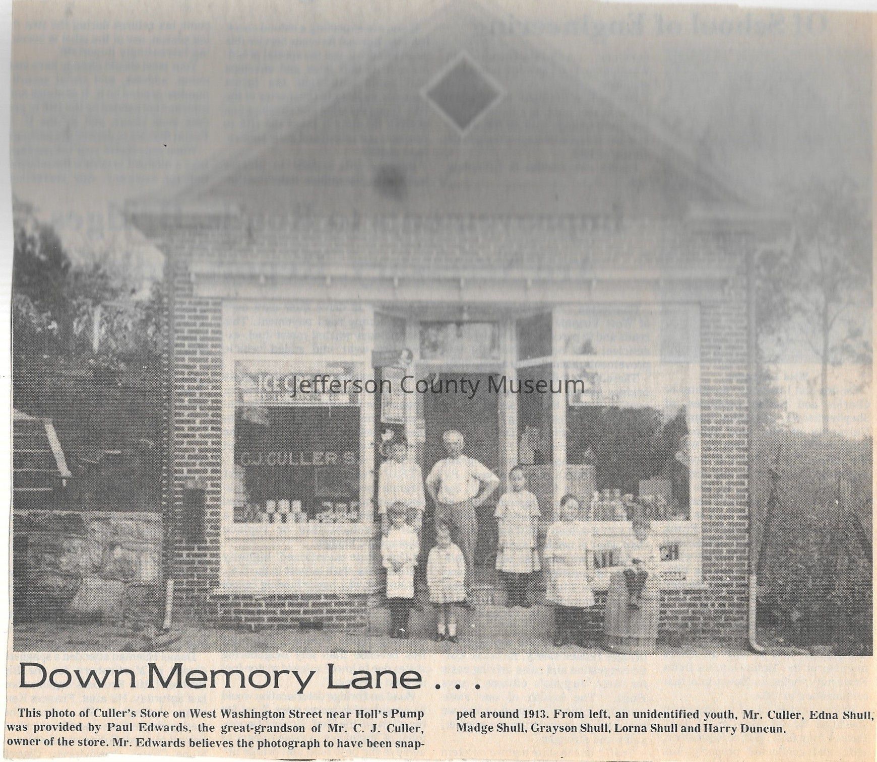 IMG3908021: C. J. Culler's Store, on West Washington Street in Charles Town, circa 1910s.