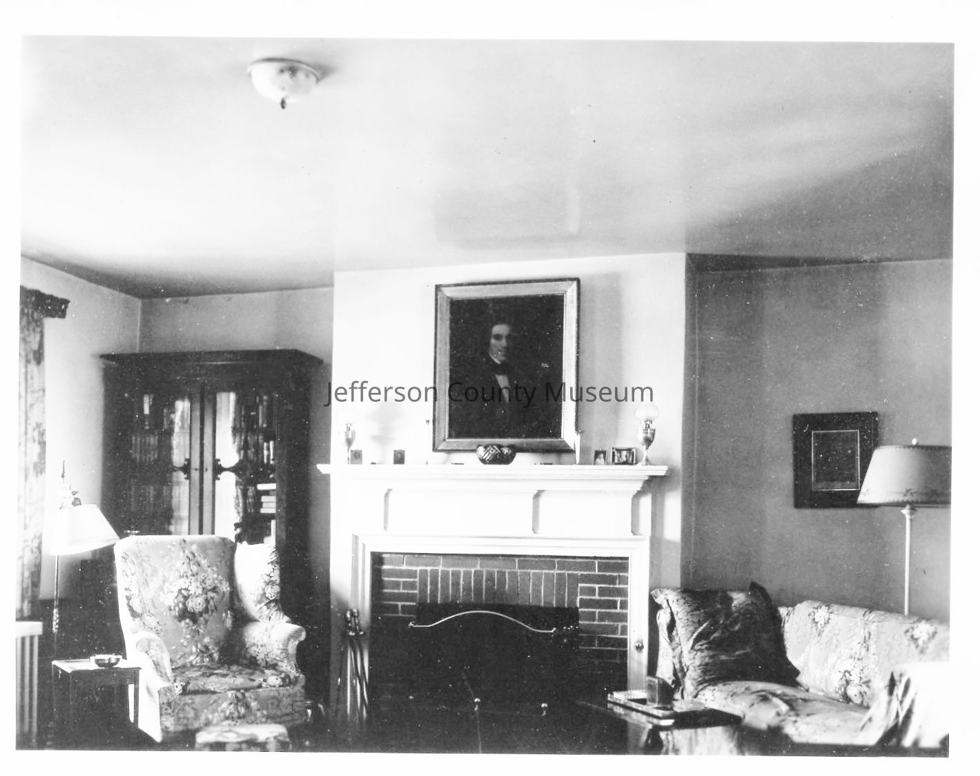 Realtor's photograph of "living room" at Gap View Farm c. 1950s. Unidentified portrait over the mantle. Image stored as a jpeg.Acquisition