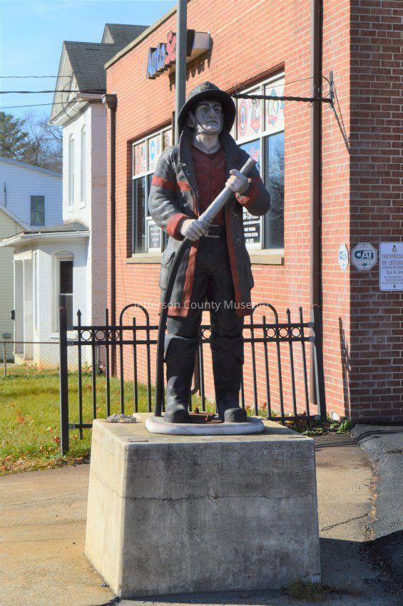 Former Citizens Fire Company fire station and statue at the corner of West Washington Street and North West Street. In 2021 the building is the AutoServ auto repair shop.Acquisition
