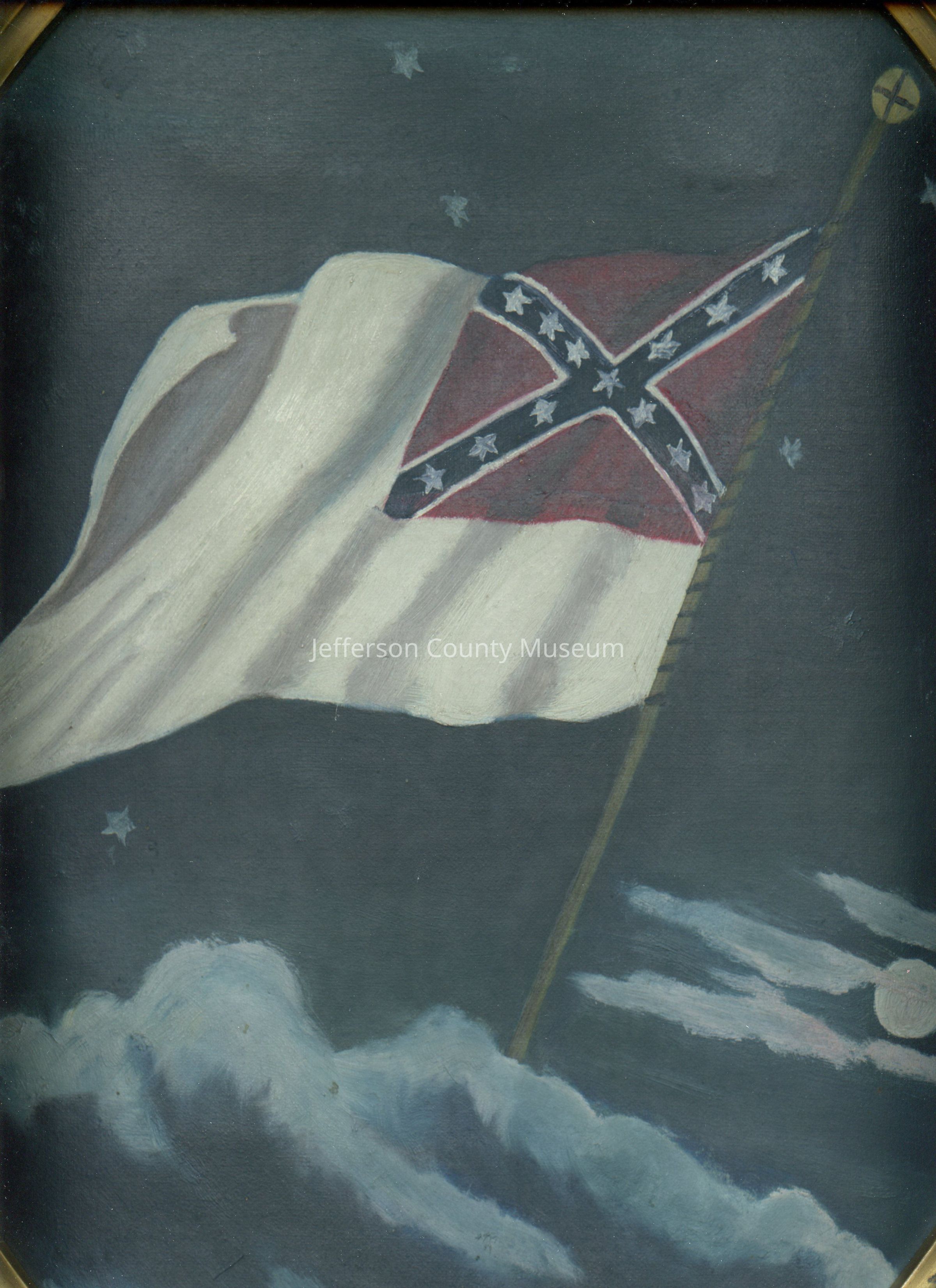 Oil on canvas copy of the copper engraving by J. C. McRae, New York, 1867, depicting the Confederate second national flag: The Stainless BannerAcquisition