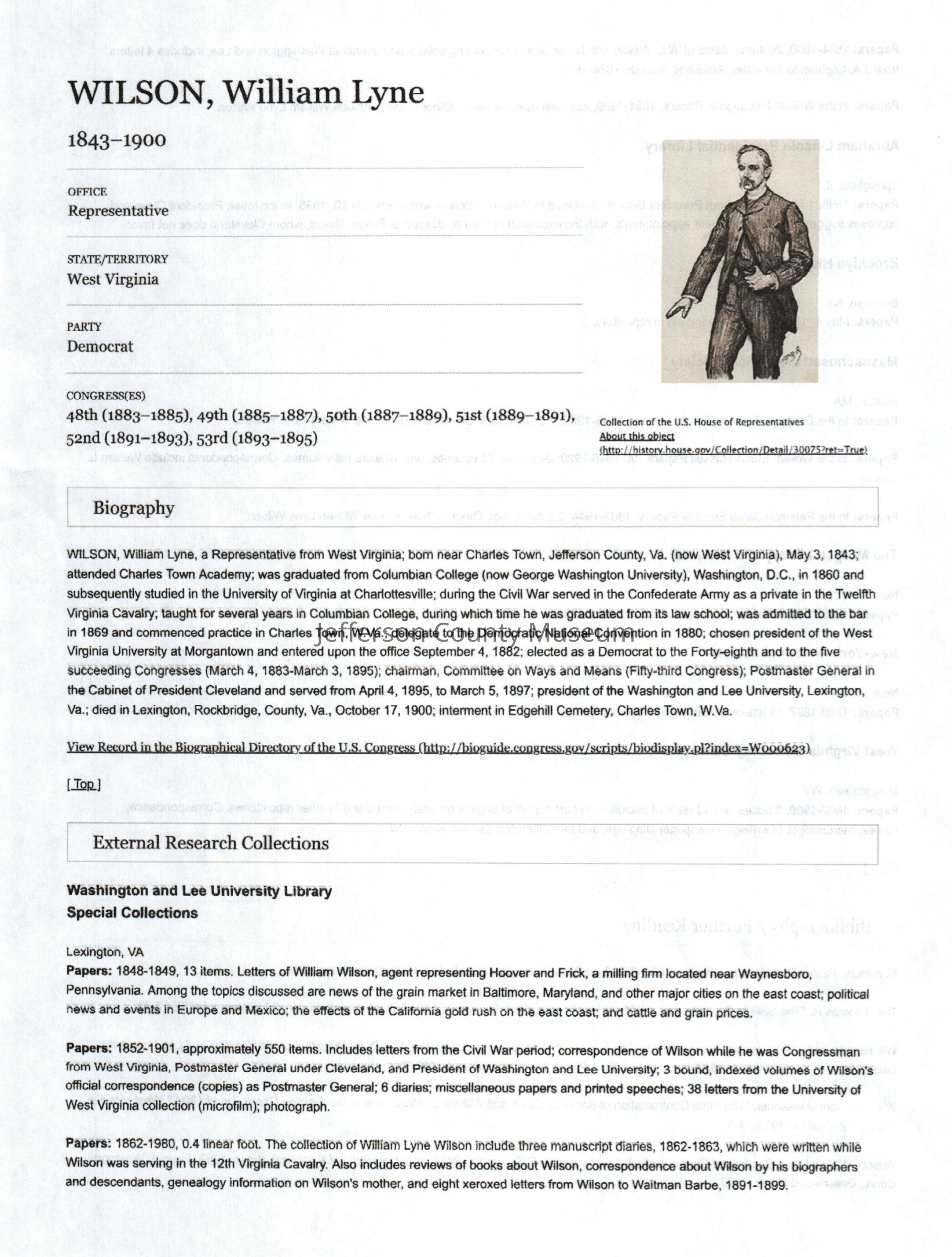 Letter dated January 6, 1885, from O. P. G. Clarke, Commissioner, Department of the Interior, Pension Office, Washington, D.C., to Emanuel Lucas, with a copy to Hon. W. L. Wilson, representative in U. S. House of Representatives from Emanuel Lucas's Congressional district. Clarke rejected Lucas's May 4, 1883, claim for a pension because of a lack of evidence of his alleged hernia during his service.