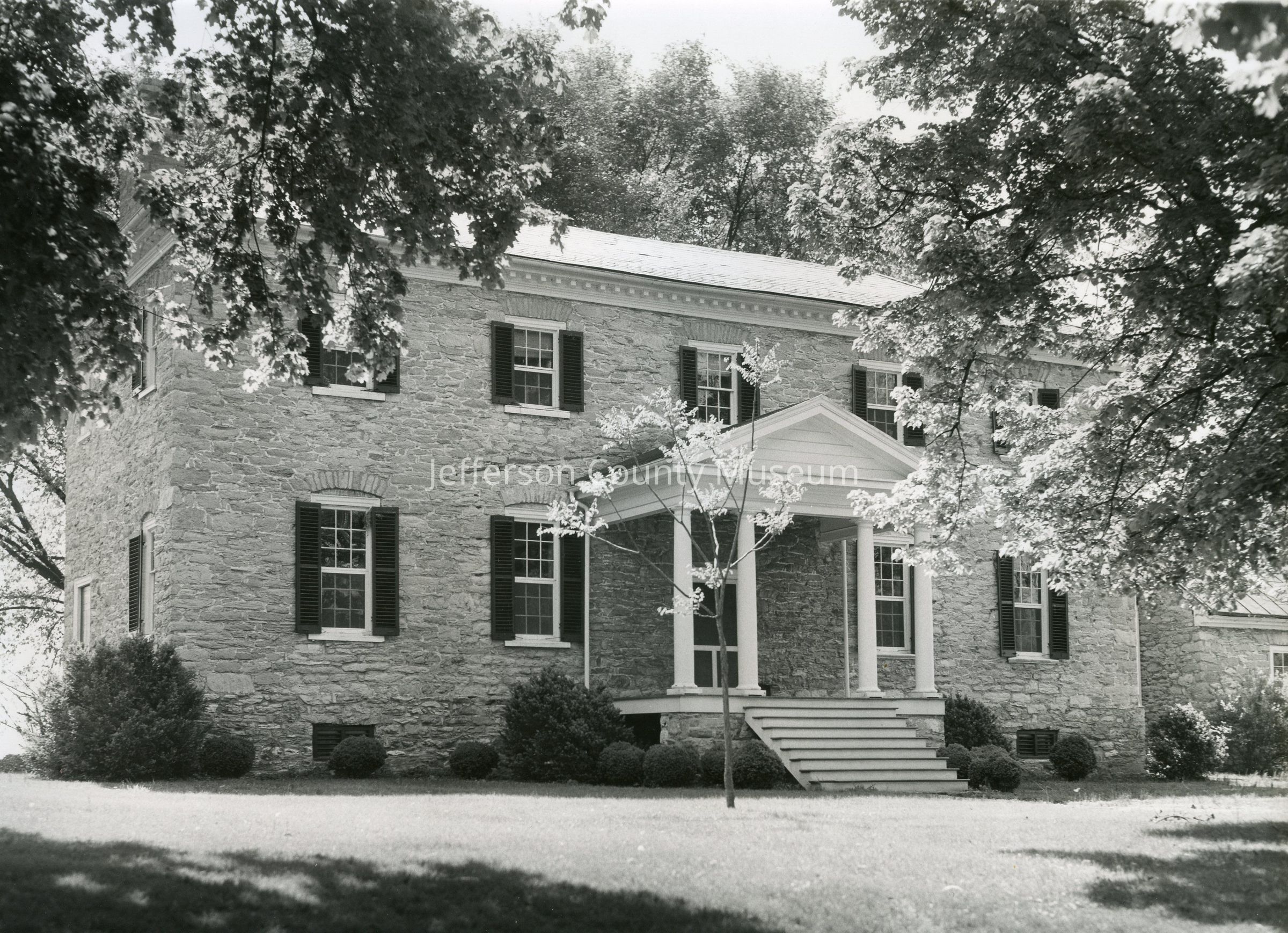 Harewood home of Samuel Washington (1734-1781) younger brother of General George Washington; view showing west entrance; photographed c. 1950s; built of native limestone in 1770 by John Ariss.
