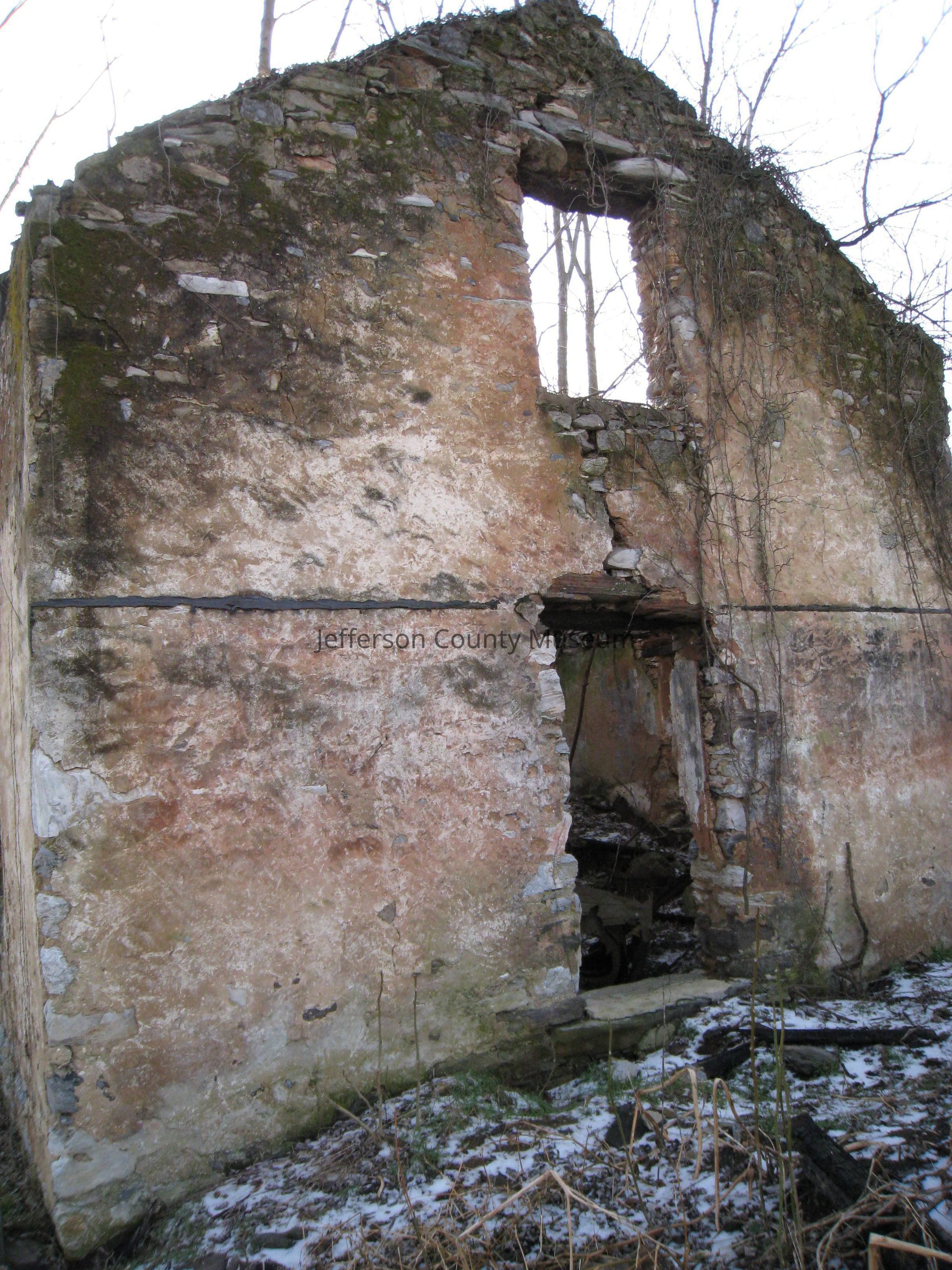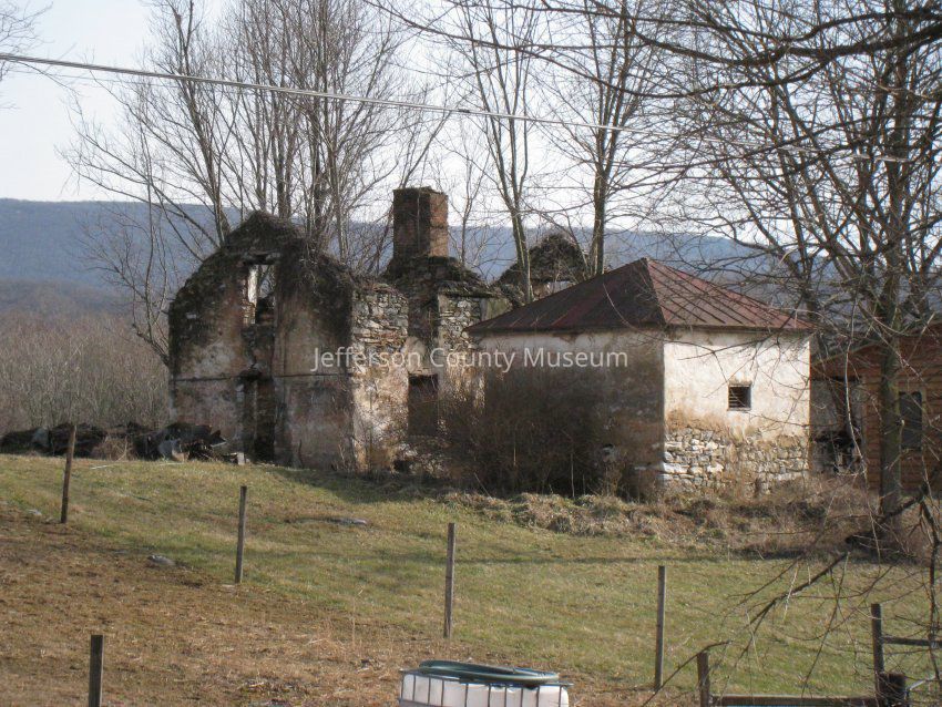 A collection of images of the ruins of outbuildings at Avon Bend in 2010, site of a home built by Logan Osburn, circa 1848, located off Avon Bend Road just before crossing the Bullskin Run heading southeast. Remaining is a square stone, two-story building built mid-nineteenth century with gable entry, a two room kitchen with a central chimney, and a pitched pyramidal roof (according to "Uncommon Vernacular" by John Allen, Jr.)