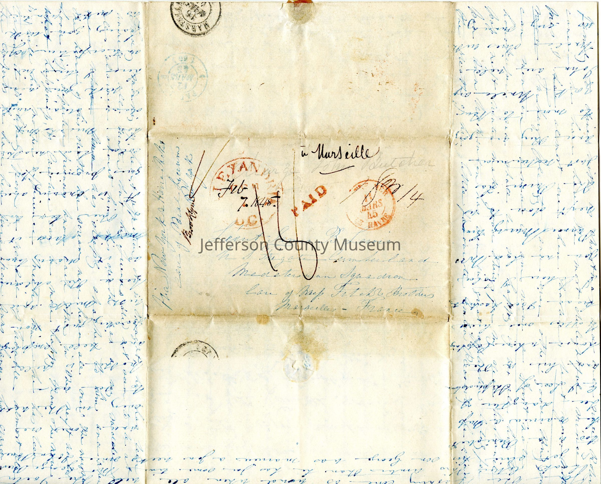 An 1845 letter to Lt. James B. Lewis from his wife, Ann Hume Lewis, while he was overseas in the Navy. The Lewises lived in the southeastern portion of Jefferson County. (ARC150-JBL-C-3)