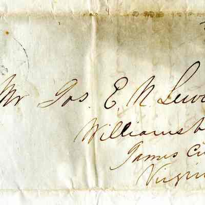 MIddle left: An 1847 letter written to Joseph E. N. Lewis in James City, Virginia, from his mother, Mary Muse Lewis. The five-cent postage is stamped in the upper right hand corner. (ARC150-JNL-C-2 012)