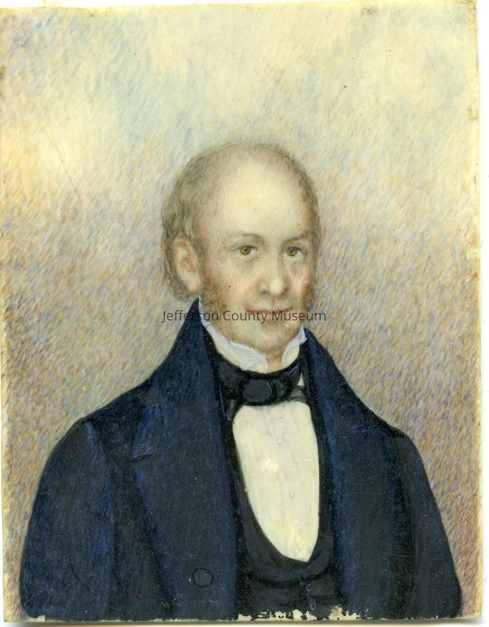 IMG3950-1: Miniature painting. Written on back of painting is: "Joshua Osburn Se[?] by Adeline Osburn July 1849."