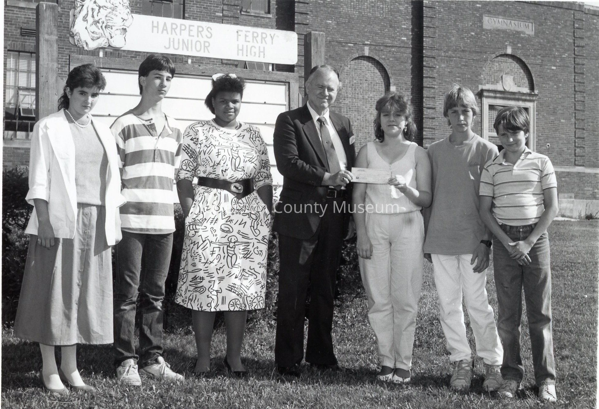 Six students at Harpers Ferry Junior High School with Mr. Robert Ott making a presentation.