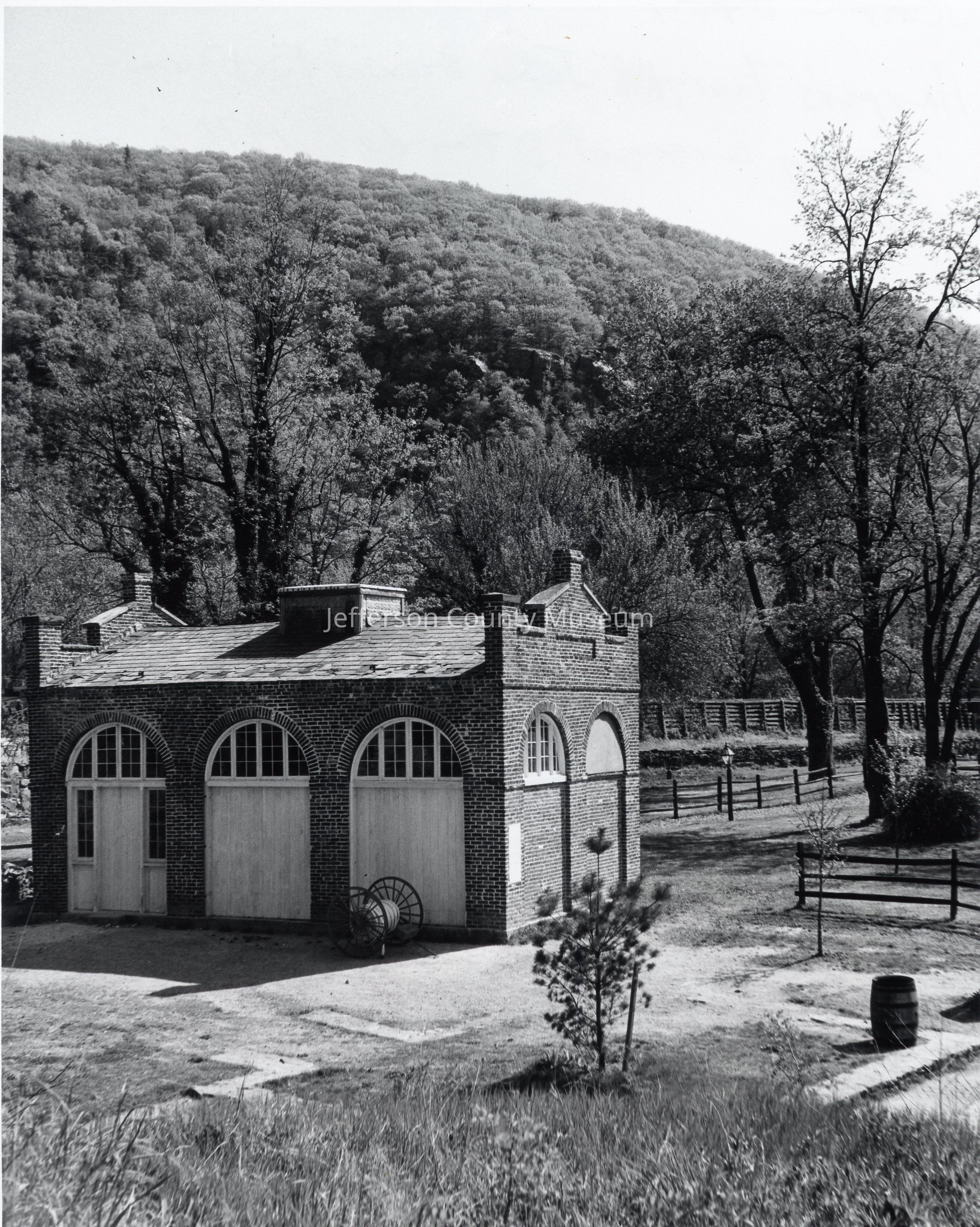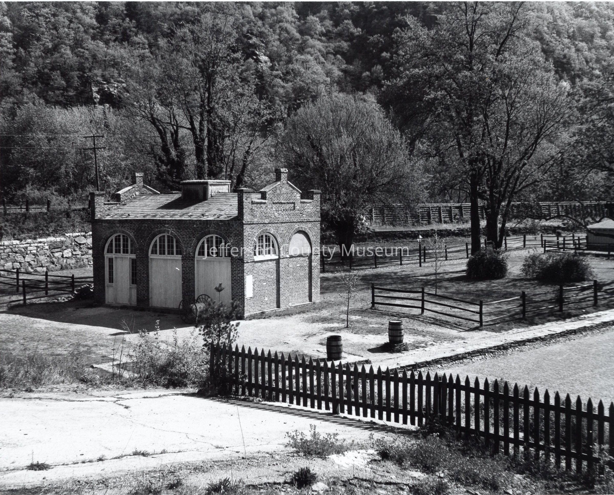 John Brown's Fort - original U. S. Armory fire engine and guard house. Present location of arsenal square in Harpers Ferry National Historical Park.