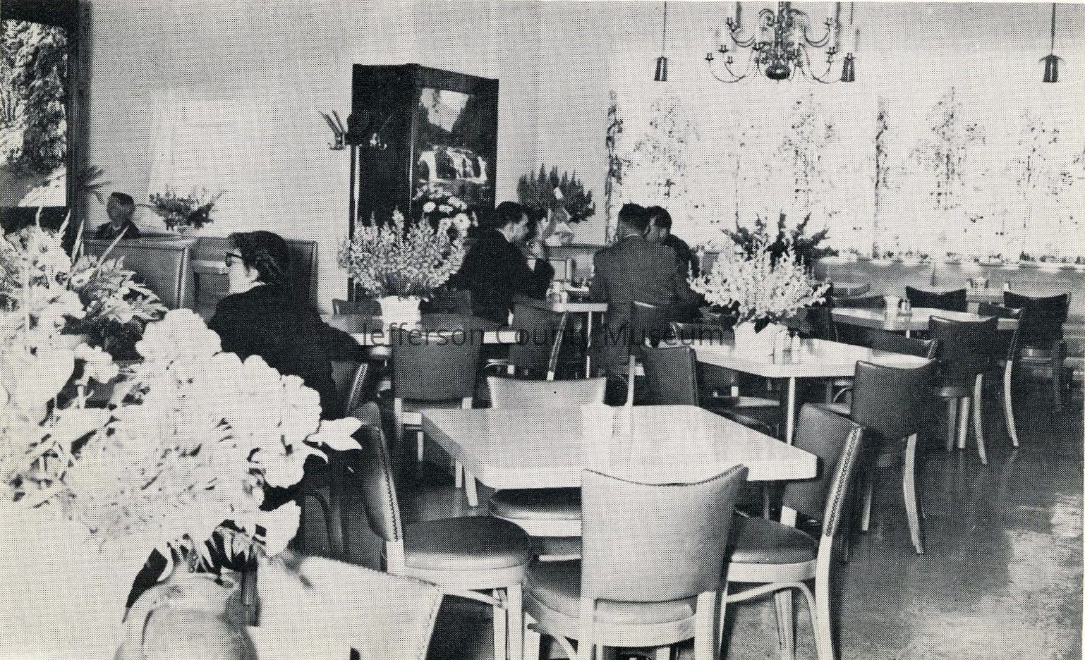 Charles Washington Hall c 1940s. First floor L-R: New Central Restaurant; Dawson's Barber Shop. Second floor L-R: Merle Alger - Justice of the Peace; Law Office - D[arrell] K[enneth] Koonce; Law Office - Bushong & Bushong [Frank Lee Jr. & Sr.].
