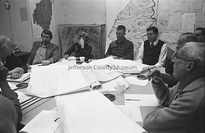 IMG3964017 Jefferson County Planning Commission - 15 negatives. From left to right unidentified man, Bob Beckett, unidentified woman, Henry B. Davenport, Thomas Newcomer, 3 unidentified men.