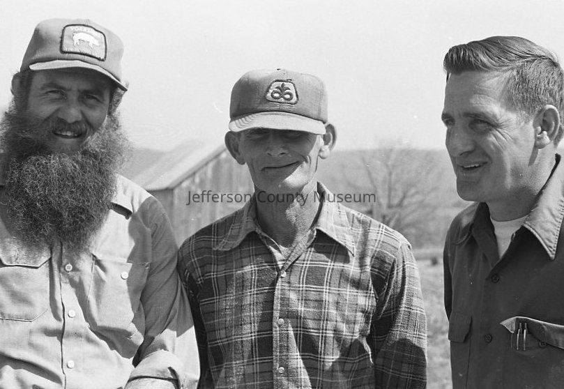 IMG3964018 Miscellaneous photos of men, women, farming equipment and pigs - 32 negatives, 2 contact sheets. In the photo in images, three men are pictured and the man to the right is Bill Knighten.