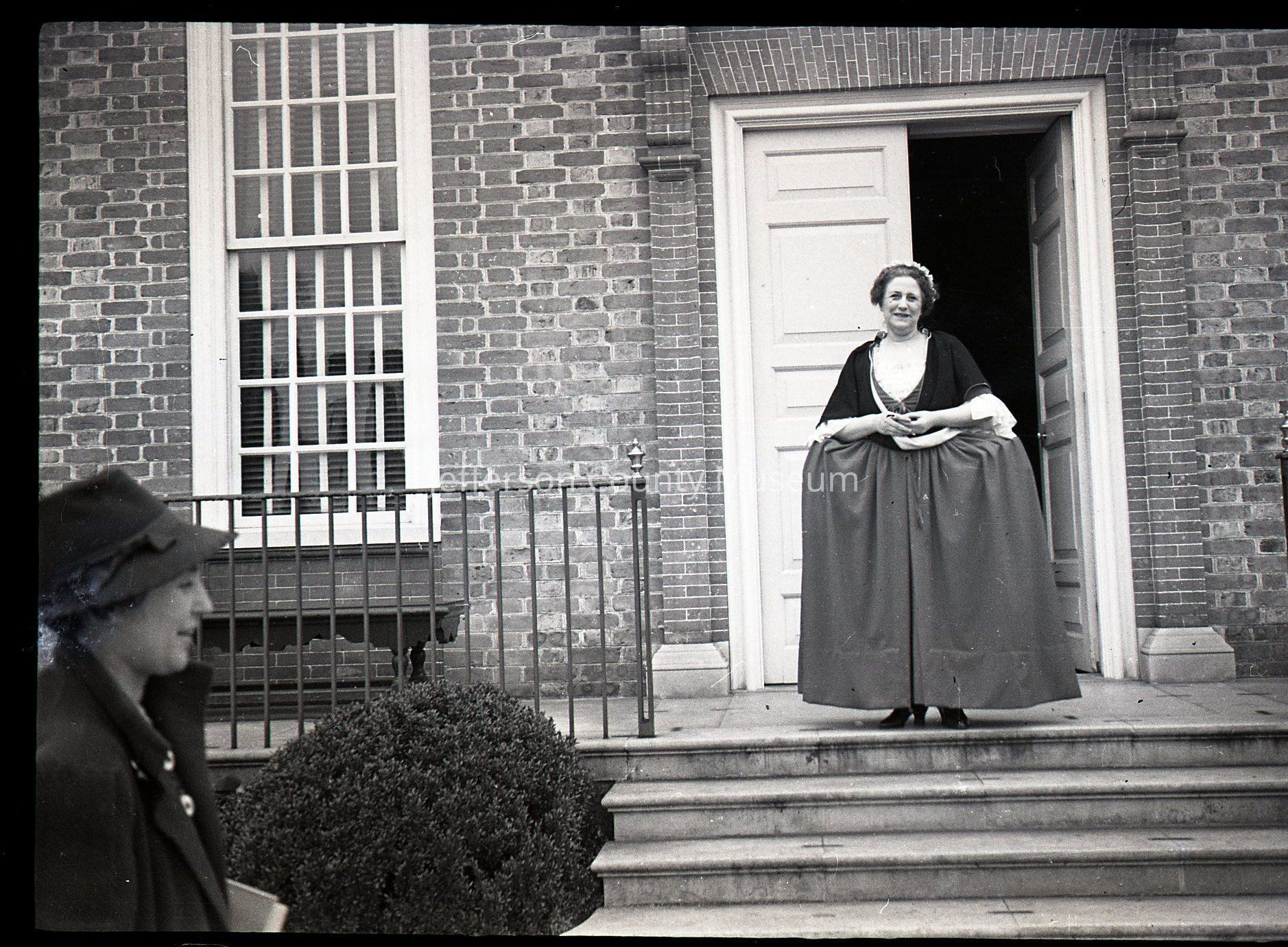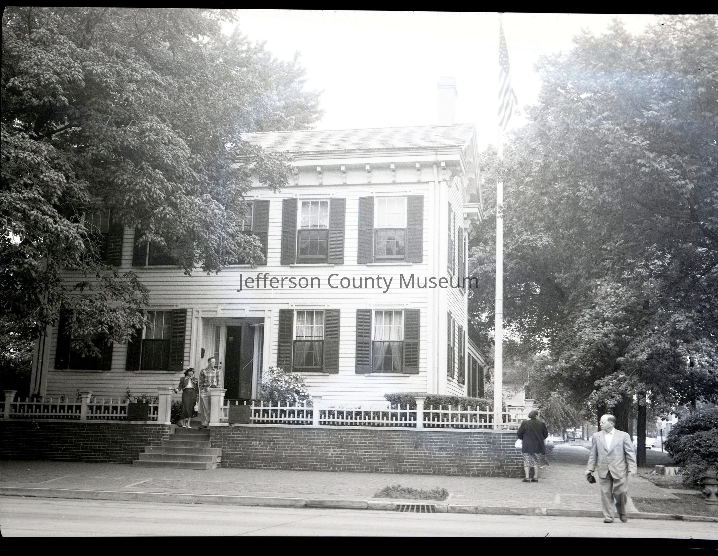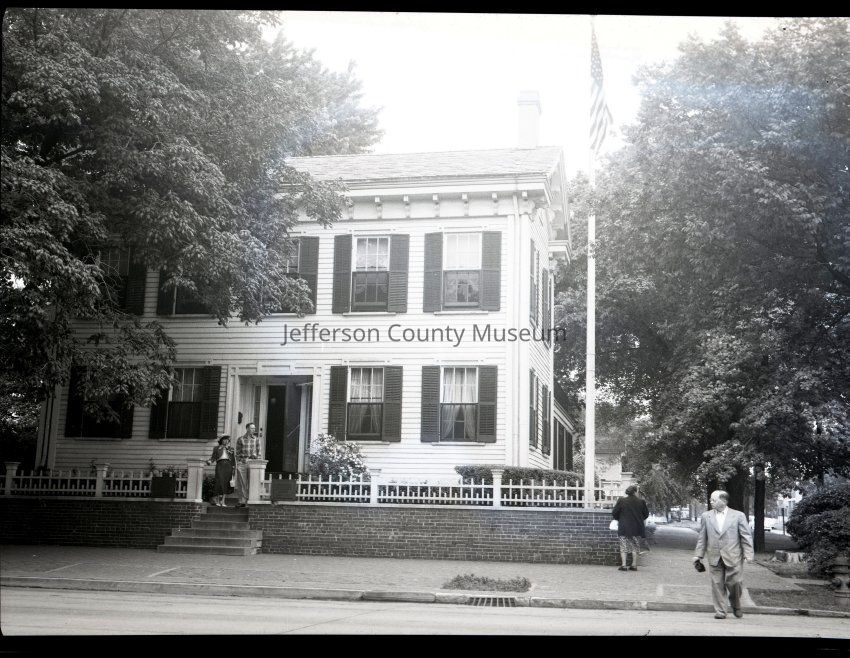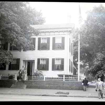 ARC969-18: Former home of Louise Moore Wiswell. Man and women on steps in front of house.