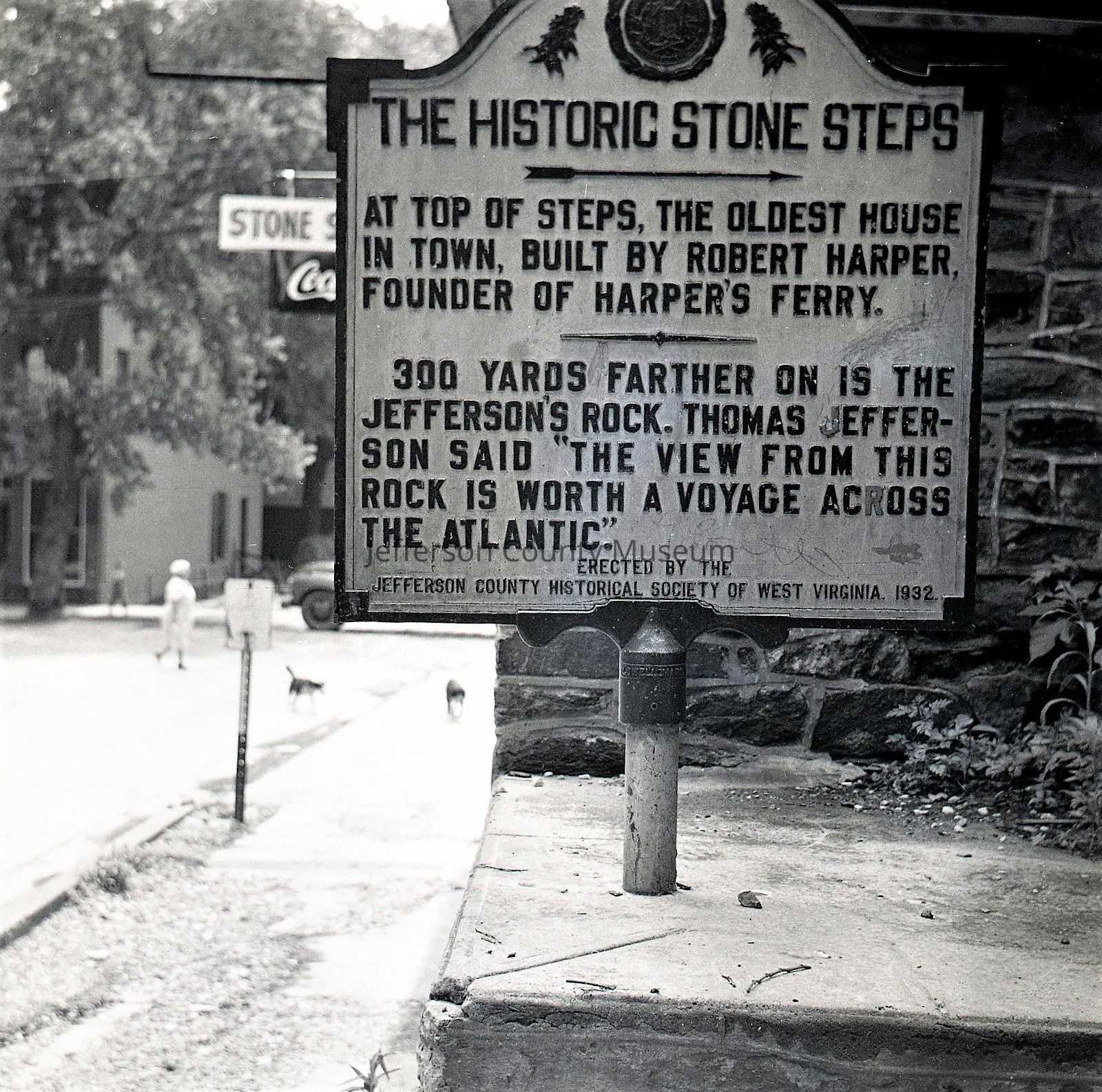 ARC969-12: The Historic Stone Steps historical marker near stone steps that lead to the oldest house in Harpers Ferry, built by Robert Harper, founder of Harpers Ferry.