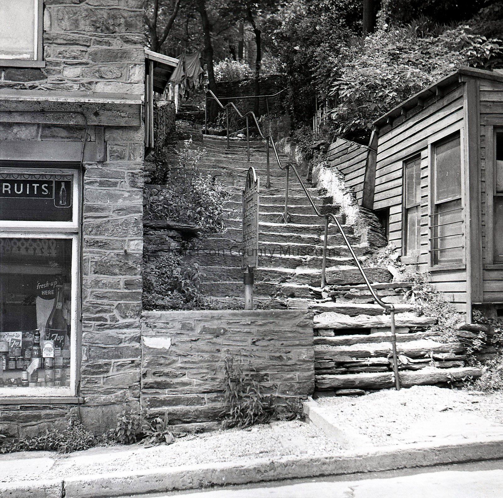 ARC969-13: Stone steps leading to the oldest house in Harpers Ferry, built by Robert Harper, founder of Harpers Ferry.