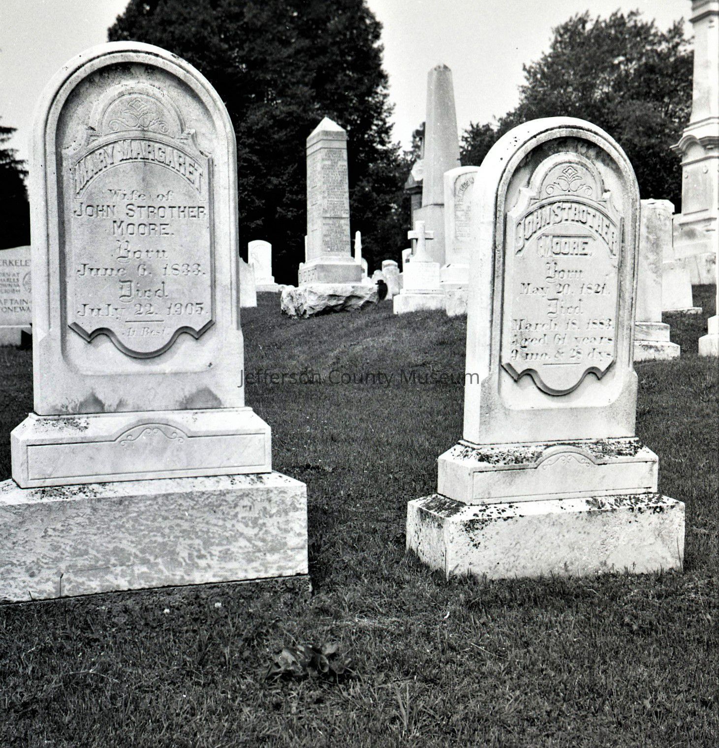 ARC969-19: Mary Margaret Moore (1833-1905), wife of John Strother Moore; and John Strother Moore (1821-1883) headstones