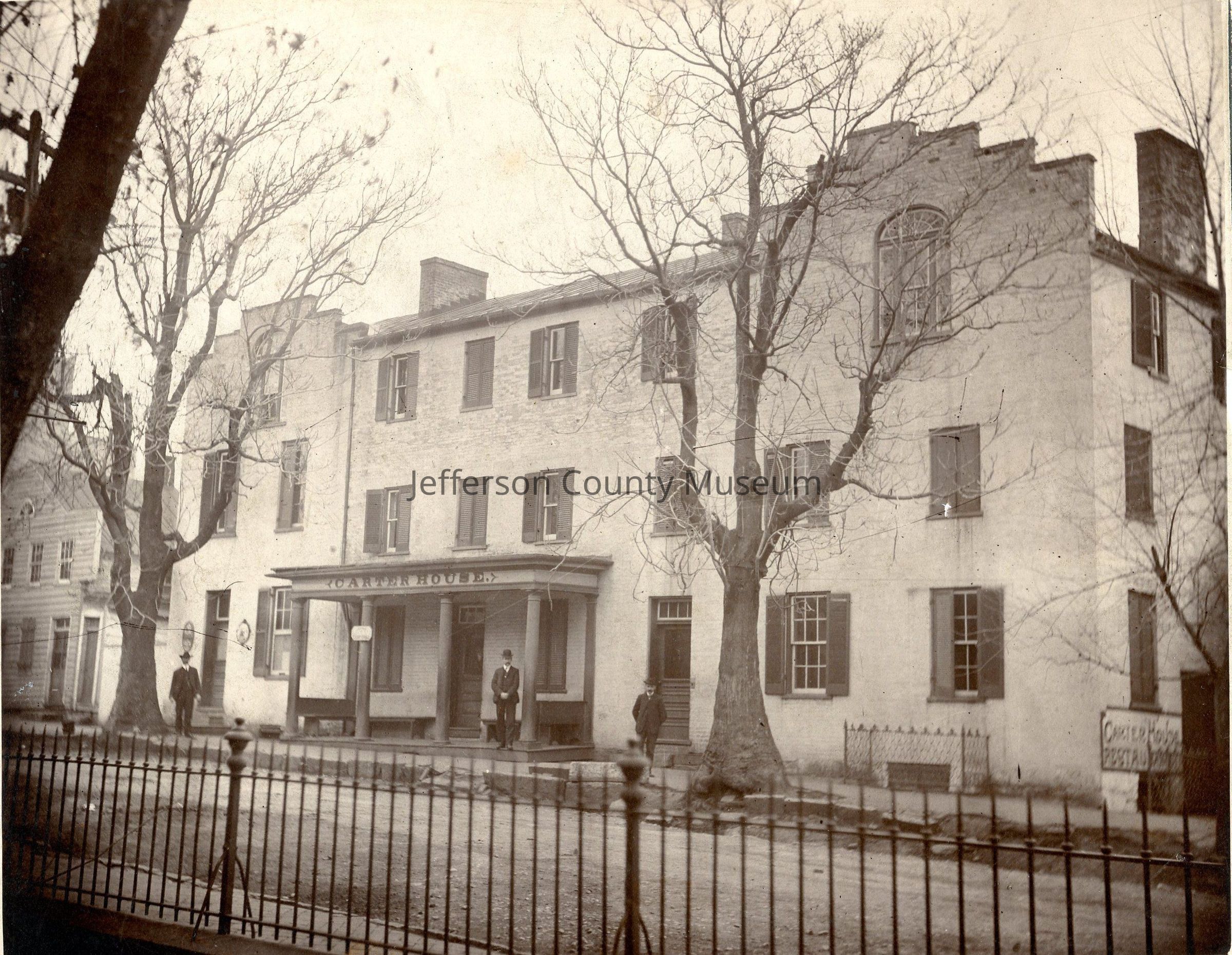 View of Carter House, which was torn down in 1904, site of Thomas Jefferson Hotel, 1906-66, present site of Bank of Charles Town.