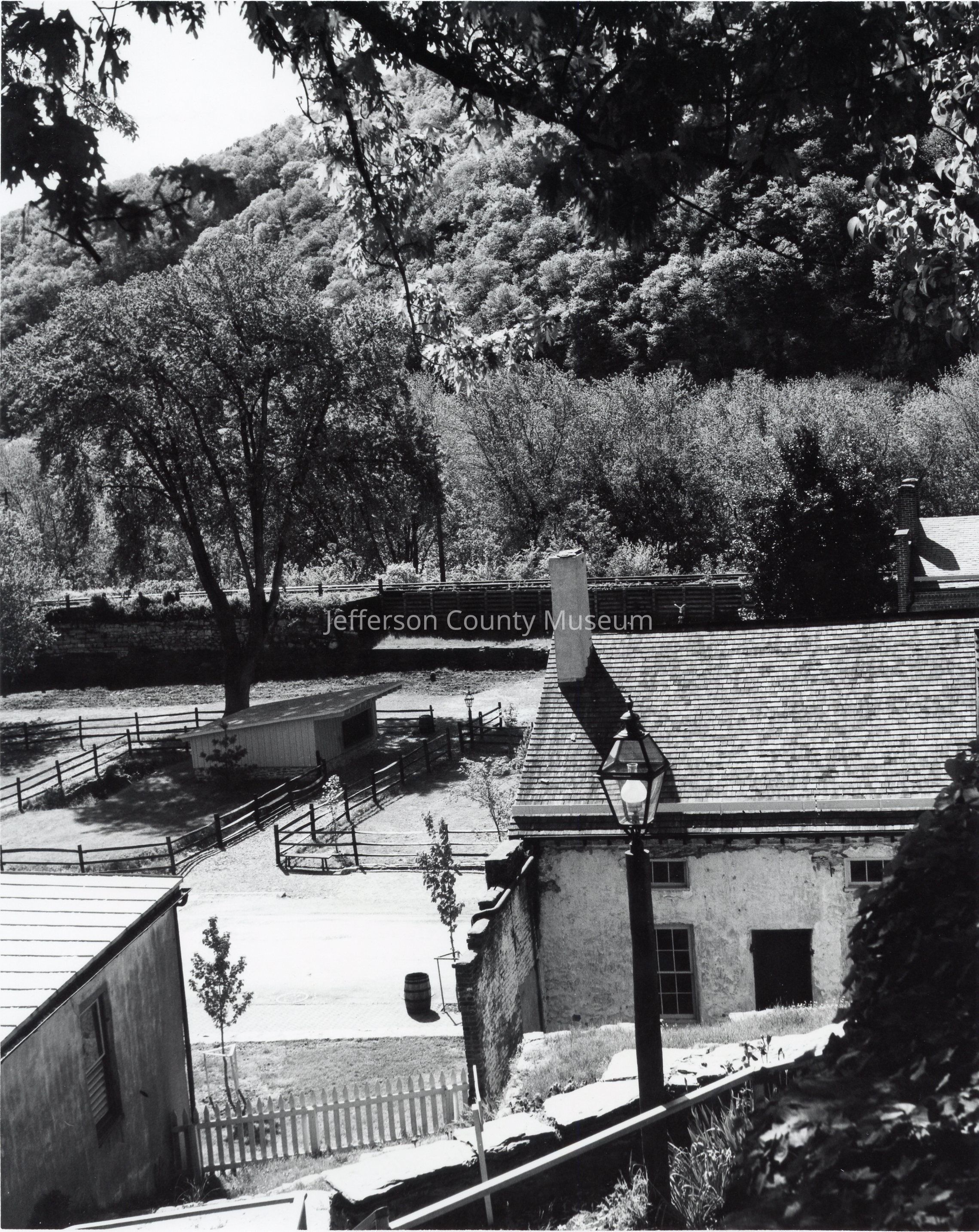Arsenal square adjacent to the raised trench of the Winchester and Potomac Railroad. Loudoun Heights in the background.