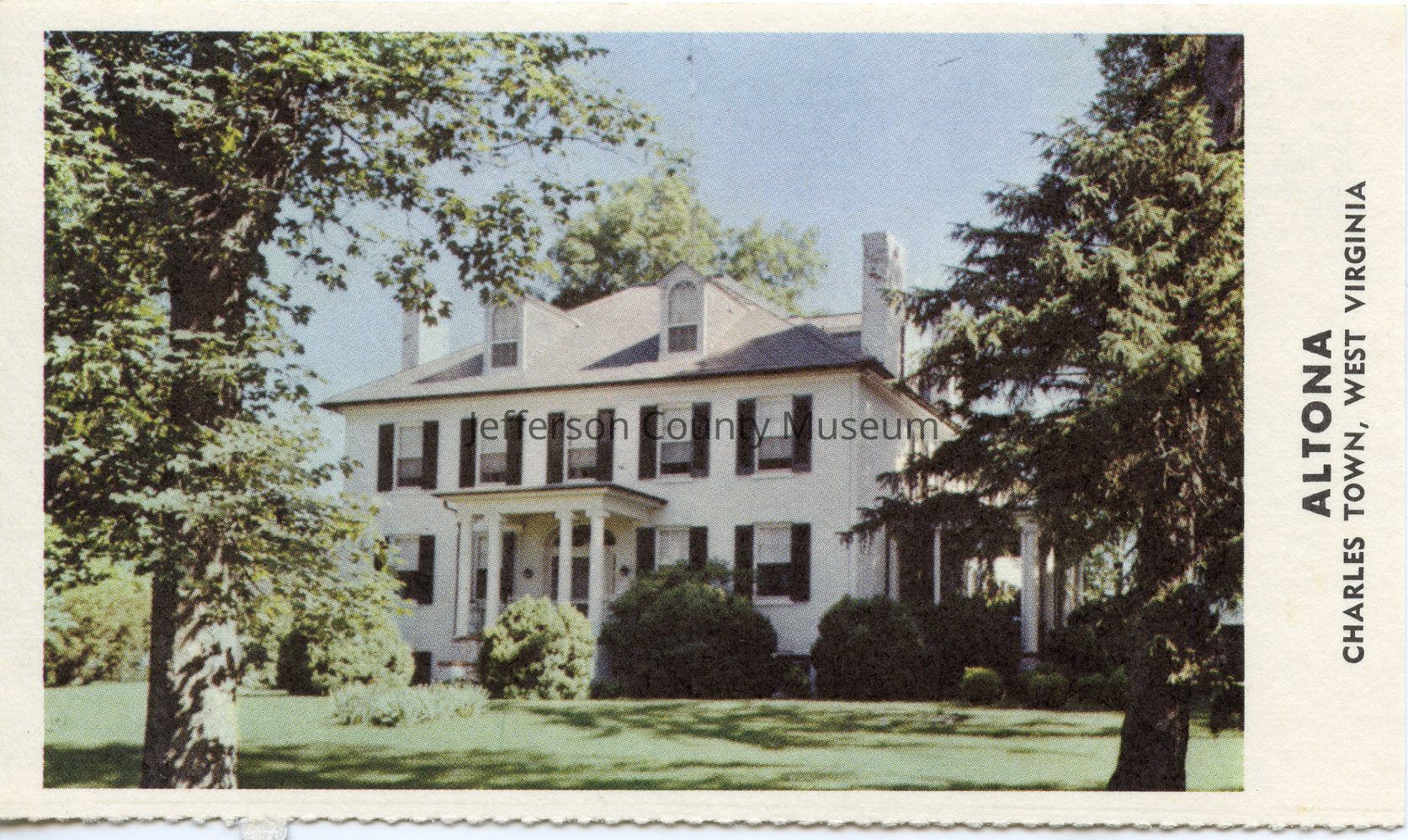 Altona, Charles Town, West Virginia: Altona, on the Middle road near Charles Town was a favorite camping site for the armies during the Civil War. Gen. Philip H. Sheridan camped here before he started his famous ride through the Shenandoah Valley in 1865. Henry Bedinger Davenport III presently owns the estate, and lives there with his mother and his stepfather, Mr. and Mrs. Leeds Riley.Acquisition