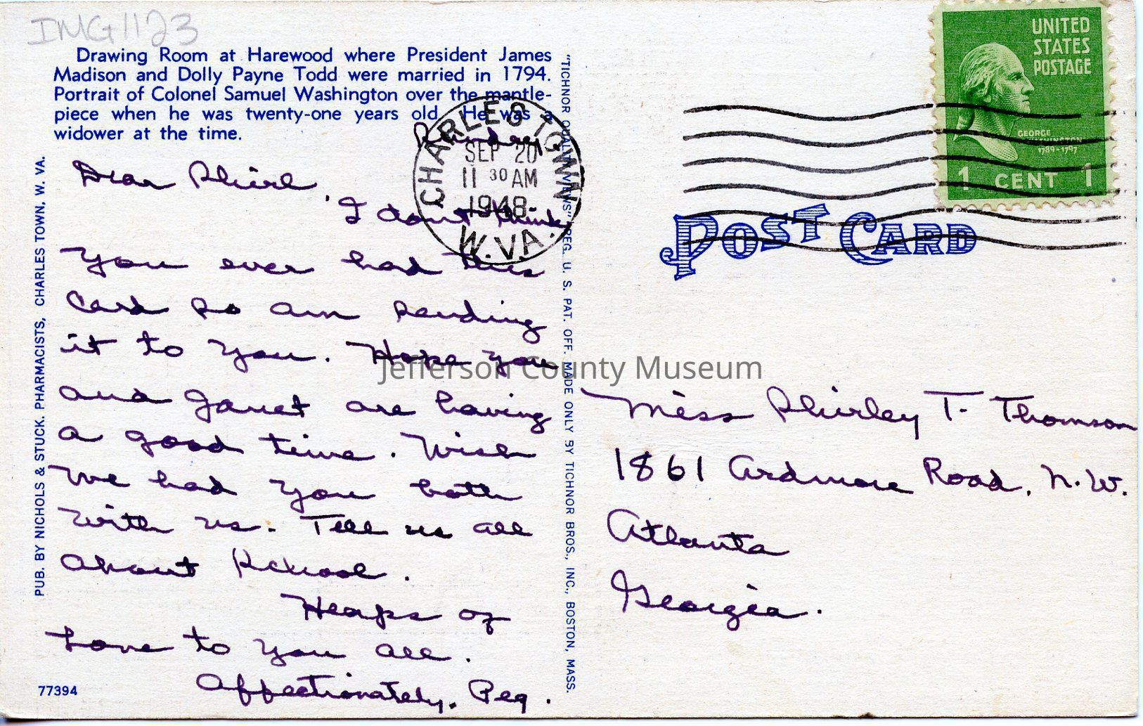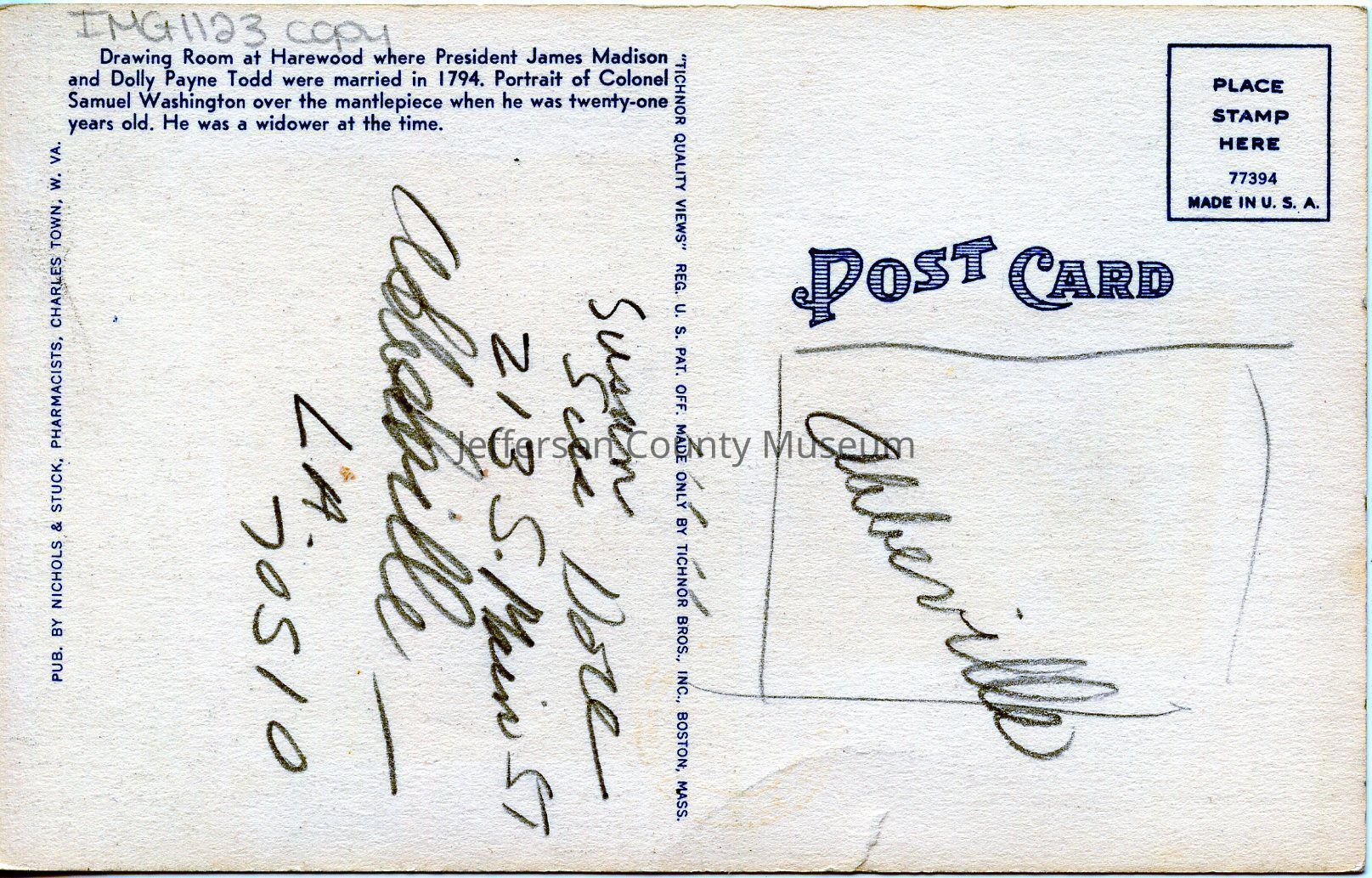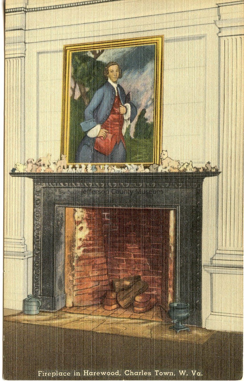 Fireplace in Harewood, Charles Town, West Virginia: Drawing Room at Harewood where President James Madison and Dolly Payne Todd were married in 1794. Portrait of Colonel Samuel Washington over the mantle-piece when he was twenty-one years old. He was a widower at the time.Acquisition