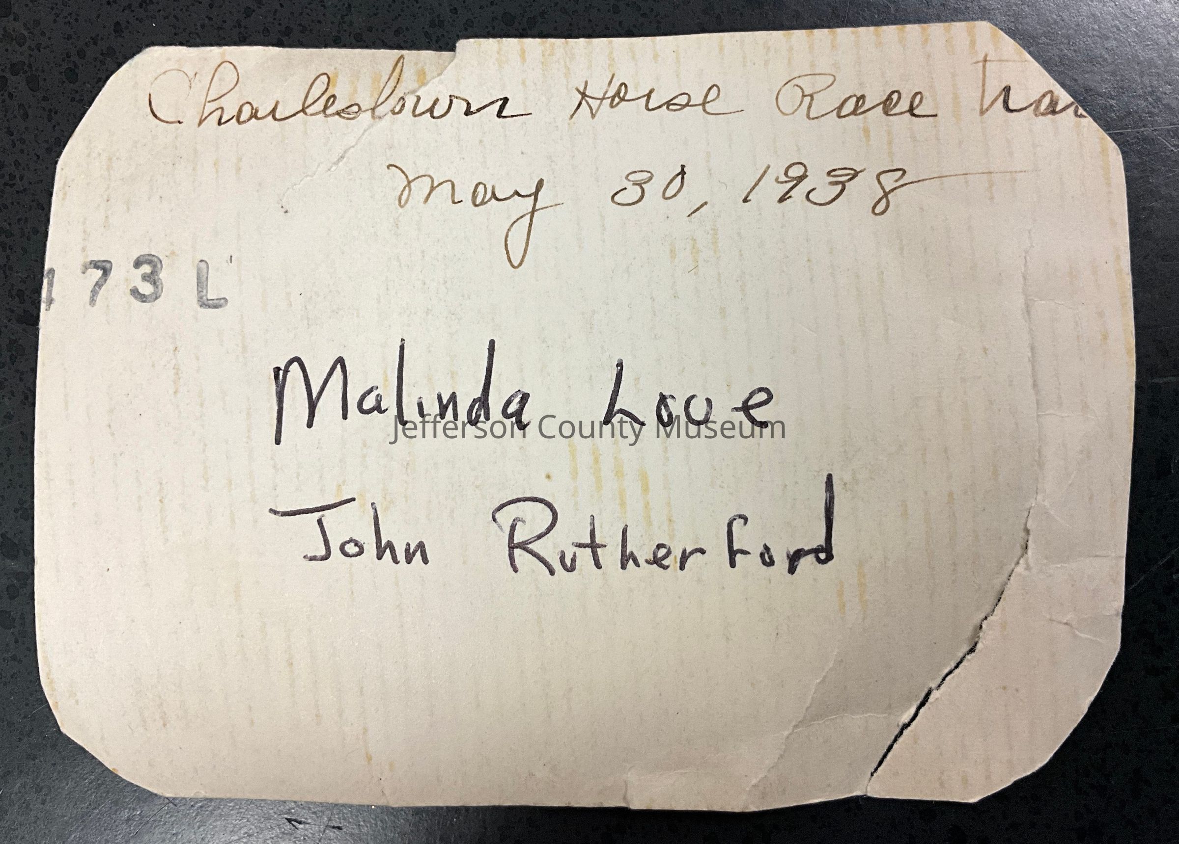 Charlestown Horse Race Track/ May 30, 1938/ Malinda Love/ John RutherfordLanguage