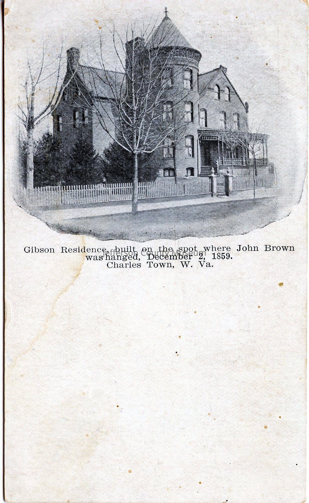 Gibson Residence, built on the spot where John Brown was hanged, December 2, 1859. Charles Town, West VirginiaAcquisition