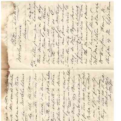-Letter to George Koonce dated Sept 20, 1863 from Jn Mapley (?) in Baltimore regarding his anxiety for the future and an upcoming claim of Koonce's that is to be presented in Washington by Mr. Chaplaine. He references a "peace in Shepherds Town" and discussions with a Mr. Frey of Berlin [Brunswick]