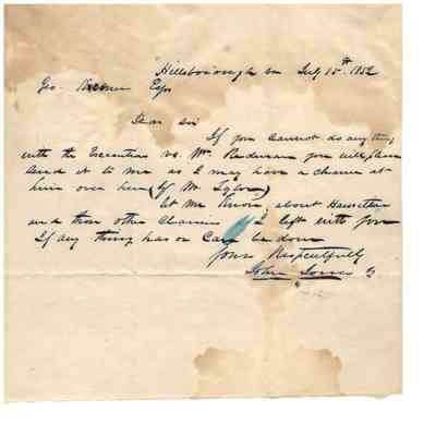-Letter to George Koonce from John Jones from Hillsborough, Va, dated July 15, 1852 regarding specific claims and legal cases pertaining to Mr. Nederman (?) and Mr. Taylor.
