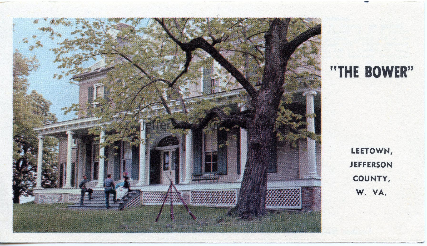 THE BOWER, Leetown, West Virginia - During the autumn of 1862, after the Battle of Antietam, J. E. B. Stuart's Confederate cavalry camped on a hill within walking distance of the Dandridge mansion, called "The Bower." Every night the soldiers were entertained at this house where there was music, sometimes provided by the regimental band, dancing, and charades.Acquisition