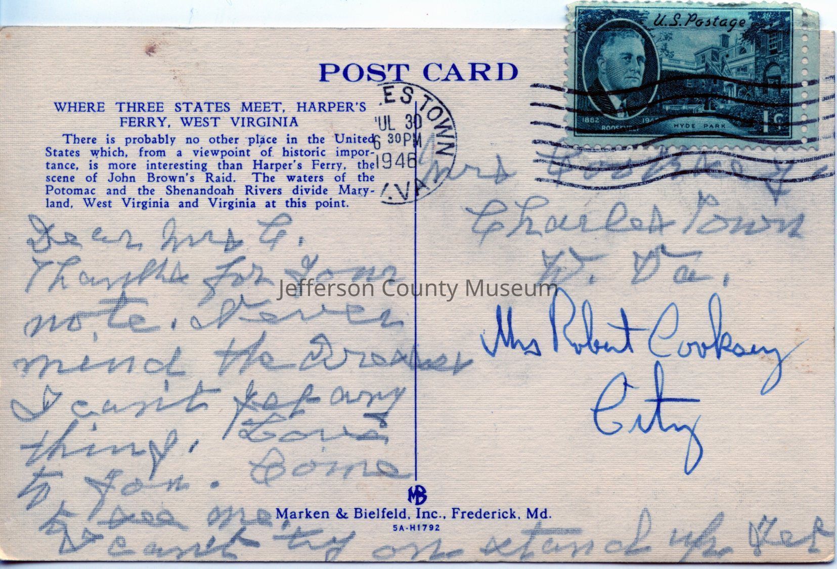 There is probably no other place in the United States which, from a viewpoint of historic importance, is more interesting than Harper's Ferry, the scene of John Brown's Raid. The waters of the Potomac and the Shenandoah divide Maryland, West Virginia and Virginia at this point.Acquisition
